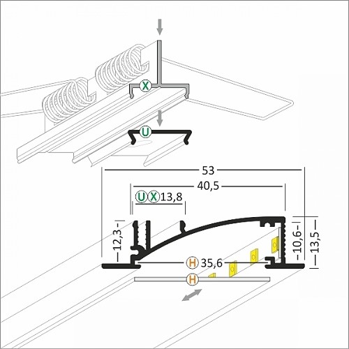 - GRÖSSE: Das LED Aluminiumprofil mit den Abmessungen 53 x 13.5 x 2000 mm ist geeignet für LED Stripes mit einer Breite von maximal 10.6 mm