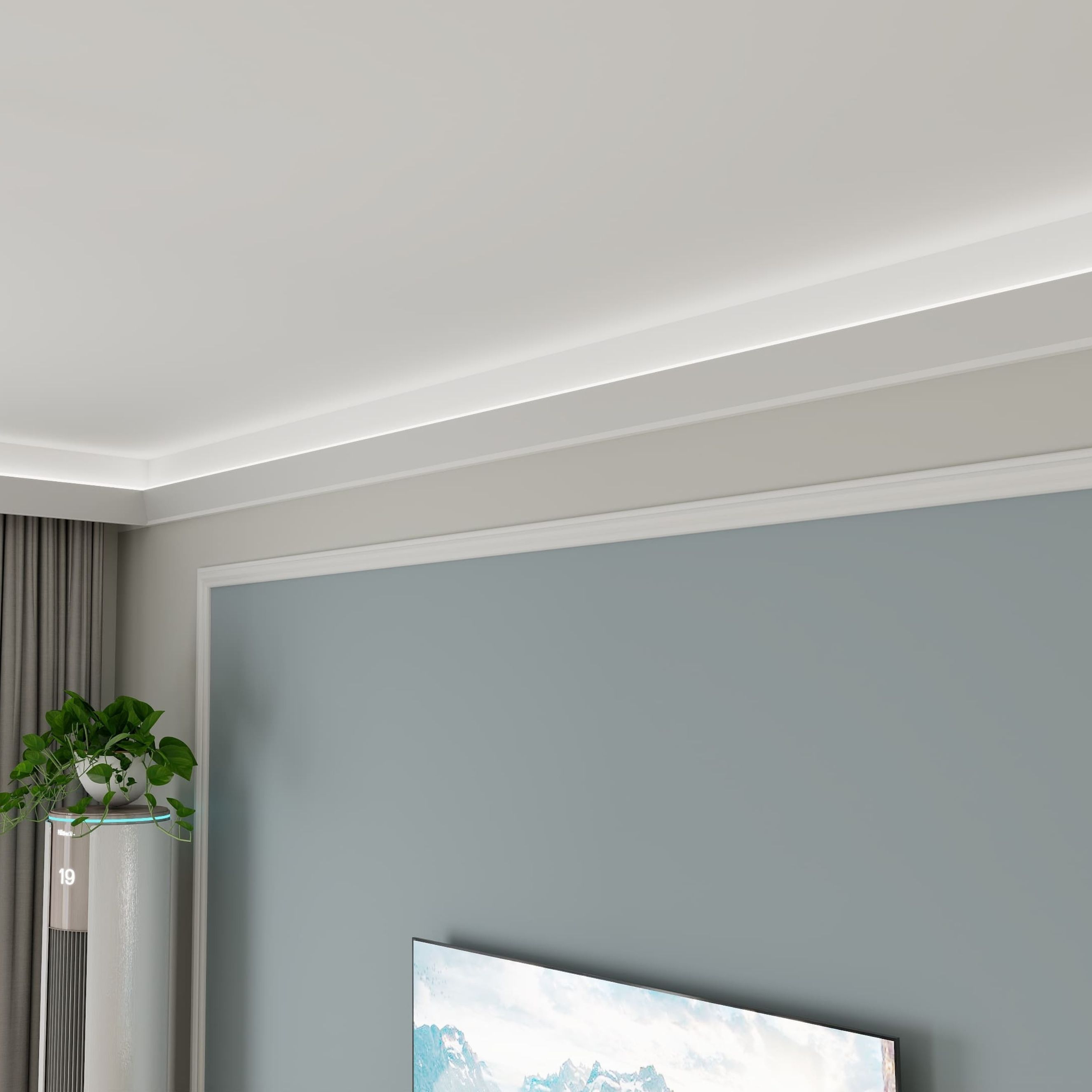 - MATERIAL: Diese Licht Stuckleiste wurde aus hochwertigem Kunststoff gefertigt und zeichnet sich durch ihre robuste und langlebige Qualität aus. Das Material ist vollkommen wasserbeständig