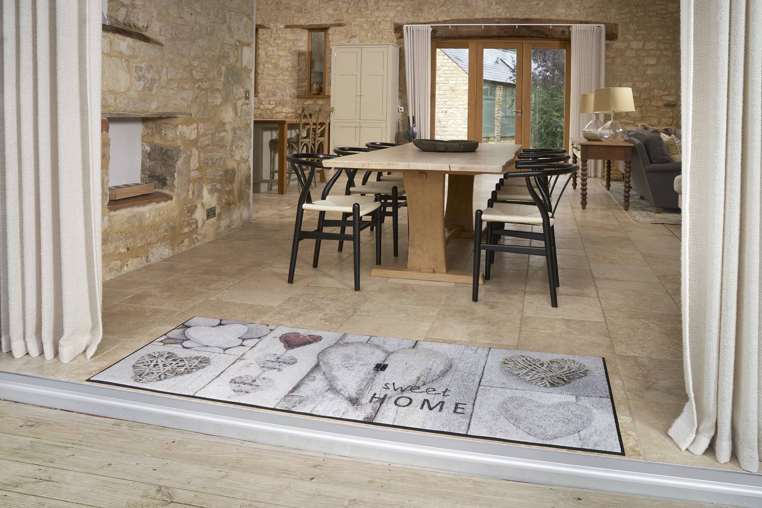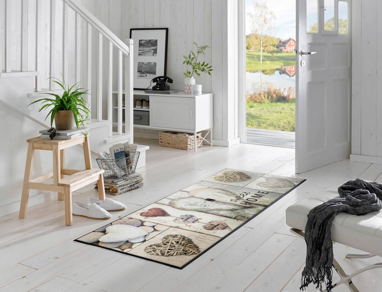 Fussmatte Vintage Hearts 190 x 75 cm Schmutzfangmatte waschbar wash+dry Design