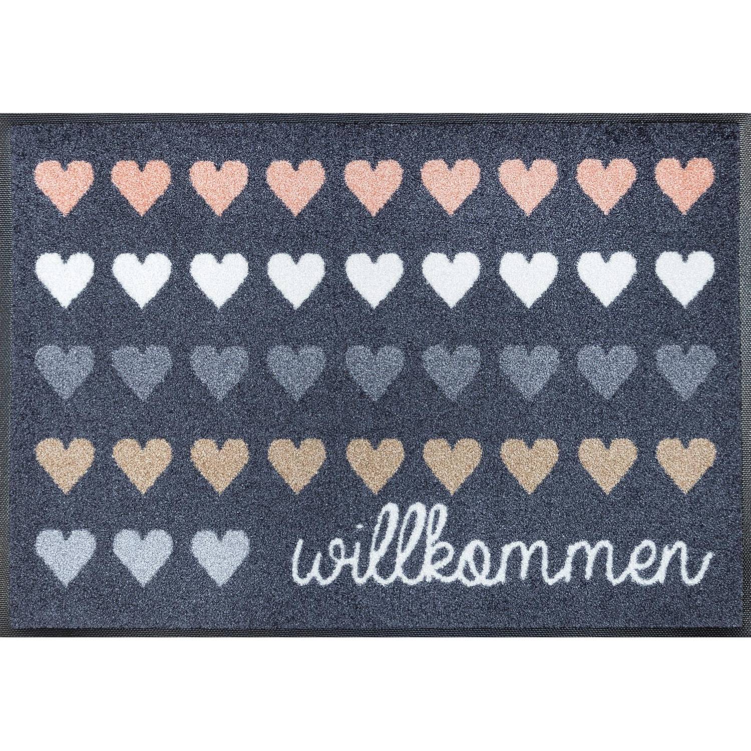 Fussmatte Willkommen Herzen 75 x 50 cm Schmutzfangmatte waschbar wash+dry Design