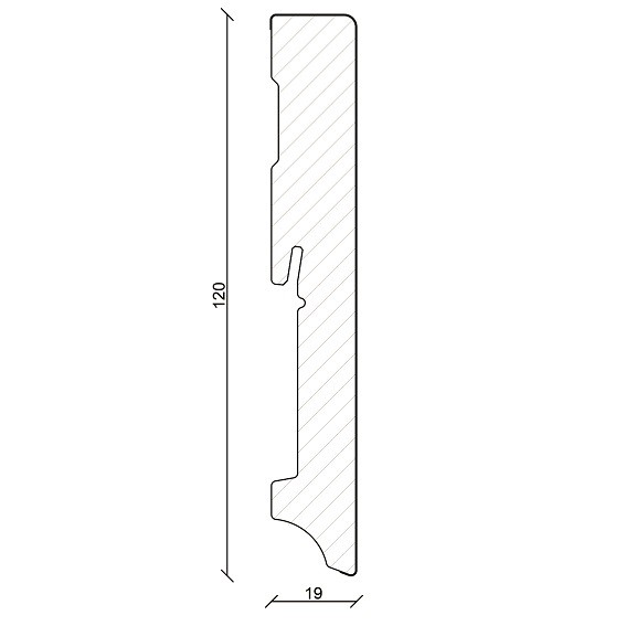 • GRÖSSE: Die Fußleiste mit den Abmessungen 19 x 120 x 2400 mm schafft einen sauberen Übergang zwischen Boden und Wand.