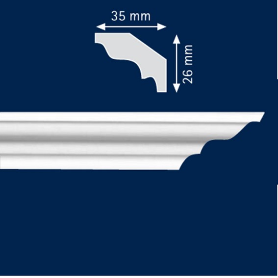 Stuckleisten aus Polystyrol zeichnen sich durch die einfache Verarbeitung und passgenaue Profilkonturen sowie glatte Oberflächen aus. Eine sich an die Montage anschließende Farbgebung ist bei dieser Styroporstuckleiste mit allen gängigen Wandfarben auf Acryl- und Wasserbasis möglich. Stuckleisten aus Styropor werden umweltfreundlich, ohne den Zusatz von Lösungsmitteln und ohne FCKW gefertigt. Schaffen Sie mit unseren Stuckprofilen, Deckenleisten und Zierleisten wirkungsvolle Verzierungen in Ihren Räumlichkeiten.