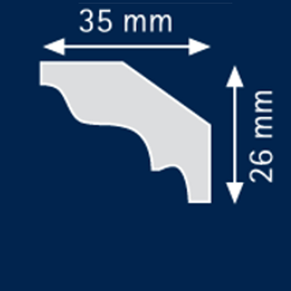 Bei diesem Artikel handelt es sich um die Stuckleiste Goodsprings des Herstellers Wiesemann aus Polystyrol. Es ist eine 35 x 26 mm messende Styroporstuckleiste (Polstyrol), die im modernen Stil gestalte wurde. Die aus extrudiertem Polystyrol (Styropor) gefertigte Stuckleiste ist trotz des geringen Gewichts hart und relativ druckfest. Die Eckleiste überzeugt mit Ihrer passgenauen Kontur und ihrer glatten Oberfläche.