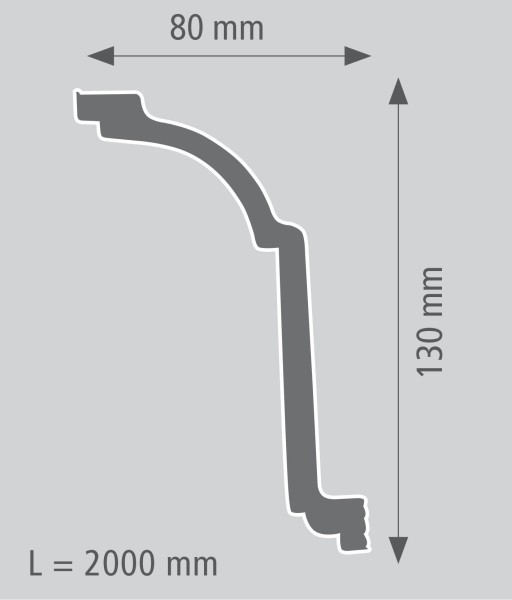 Bei diesem Artikel handelt es sich um die Stuckleiste Laguna Beach des Herstellers Wiesemann aus Polystyrol. Es ist eine 80 x 130 mm messende Styroporstuckleiste (Polstyrol), die im modernen Stil gestalte wurde. Die aus geschäumtem Polystyrol (Styropor) gefertigte Stuckleisteiste ist perfekt zur harmonischen Gestaltung von Wohn- und Gewerberäumen.