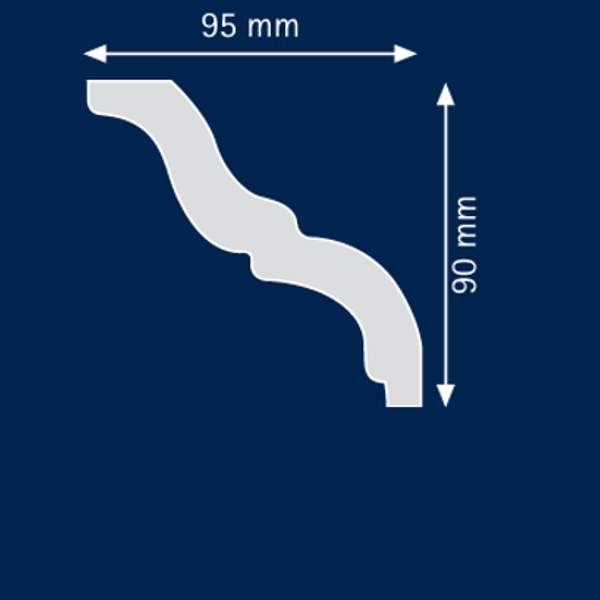 Bei diesem Artikel handelt es sich um die Stuckleiste Big Pine des Herstellers Wiesemann aus Polystyrol. Es ist eine 95 x 90 mm messende Styroporstuckleiste (Polstyrol), die im modernen Stil gestalte wurde. Die aus extrudiertem Polystyrol (Styropor) gefertigte Stuckleiste ist trotz des geringen Gewichts hart und relativ druckfest. Die Eckleiste überzeugt mit Ihrer passgenauen Kontur und ihrer glatten Oberfläche.