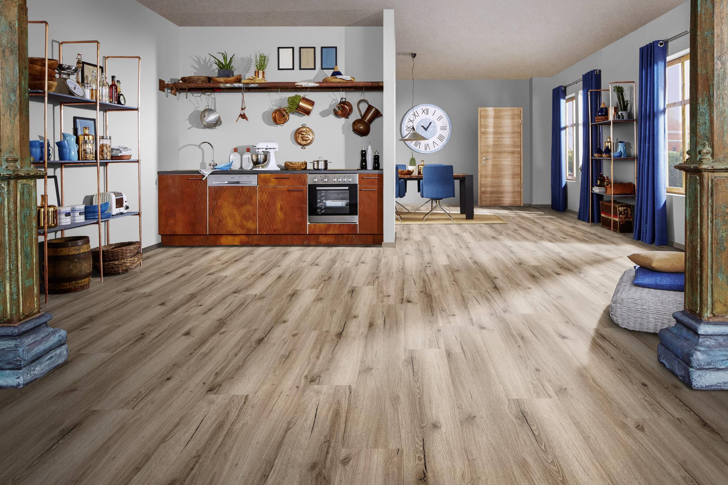 • VIELSEITIGE EINSATZMÖGLICHKEITEN: Dank seiner Feuchtraumeignung eignet sich der Vinylboden mit seiner Nutzungsklasse 23/32/42 nicht nur für Wohnräume, Küchen und Bäder, sondern auch für gewerbliche Bereiche