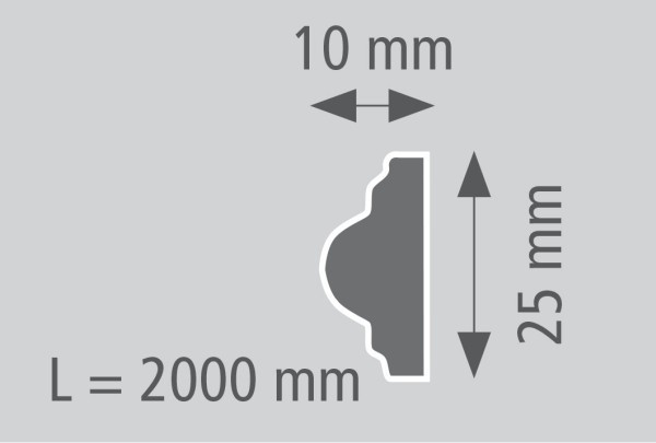 Bei diesem Artikel handelt es sich um die Zierleiste Lucia des Herstellers Wiesemann aus schlagfestem Polystyrol. Es ist eine 25 mm messende Zierleiste (Polstyrol), die im modernen Stil gestalte wurde. Die aus extrudiertem Polystyrol gefertigte Zierleiste ist perfekt zur harmonischen Gestaltung von Wohn- und Gewerberäumen.