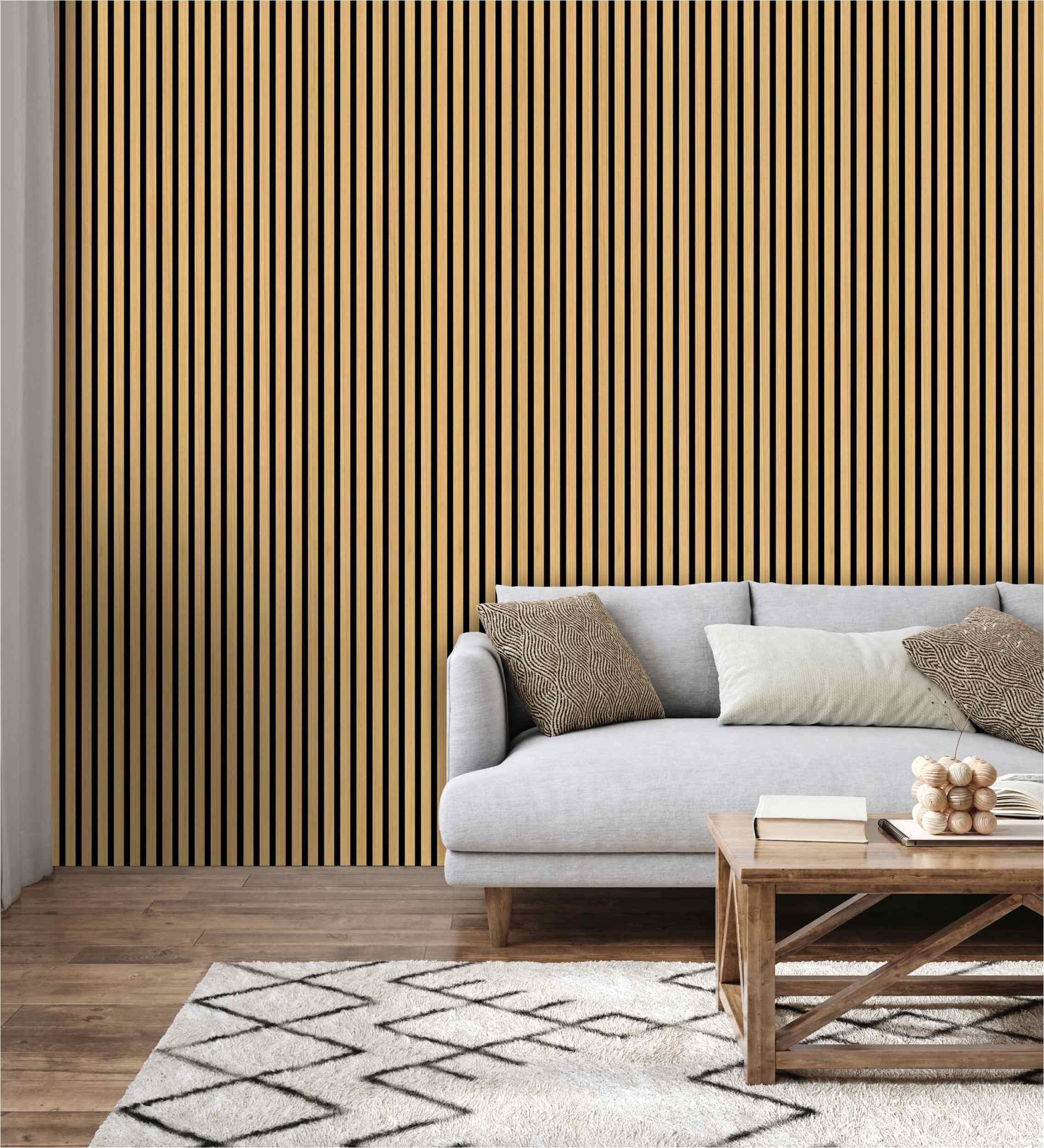 Funktion trifft Design: Diese Akustikpaneele vereinen stilvolles Wanddesign mit spürbarer Schallreduzierung. Mit MDF-Lamellen auf einem nachhaltigen PET-Trägermaterial gefertigt, bringen sie Ruhe, Struktur und Ästhetik in jeden Raum. Ob im Wohnzimmer, Büro oder in der Gastronomie. Die Akustik Wandpaneele schaffen Atmosphäre mit Wirkung.