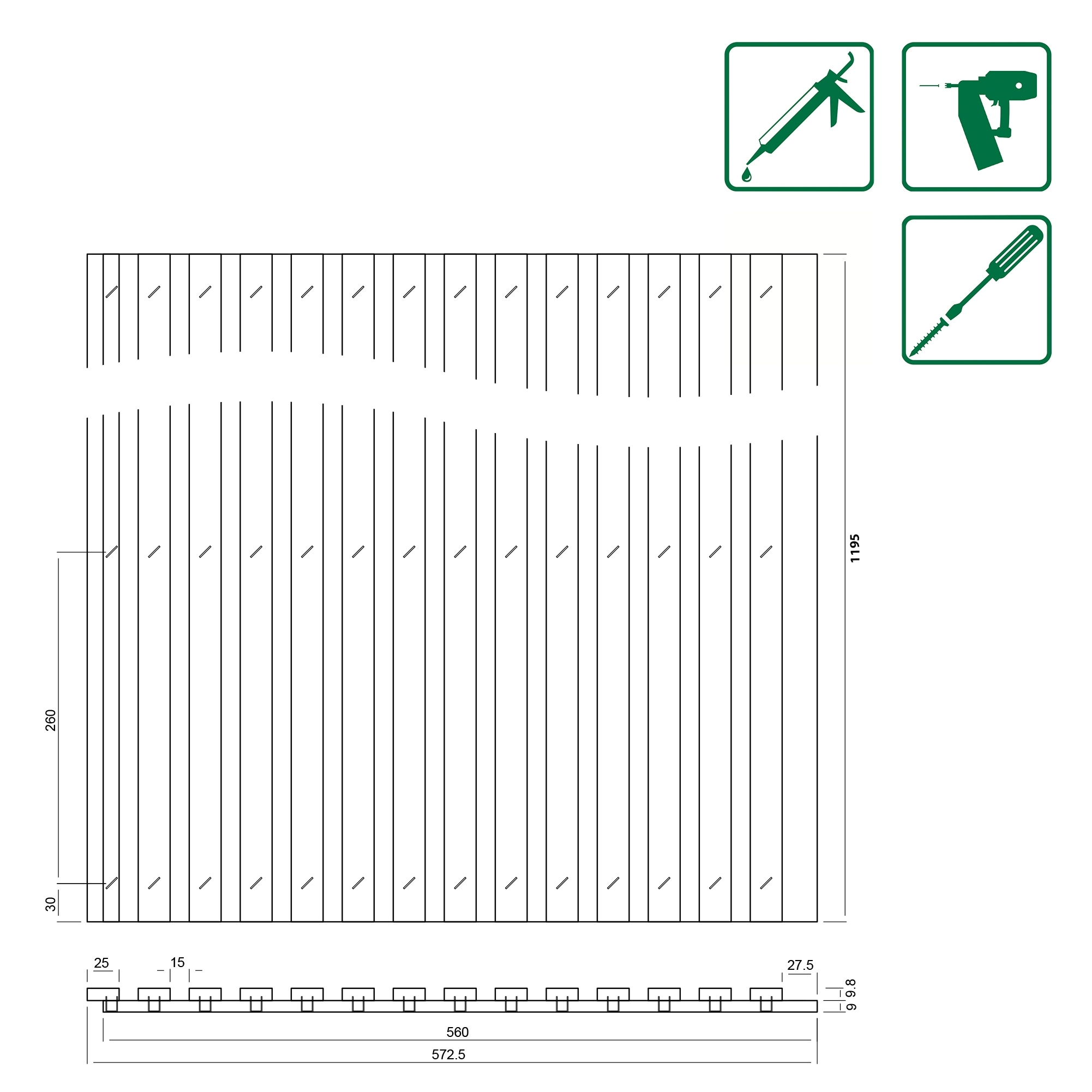 - Material: Hochwertige MDF Lamellen auf Trägerplatte aus PET-Fasern mit bis zu 60?% Recyclinganteil