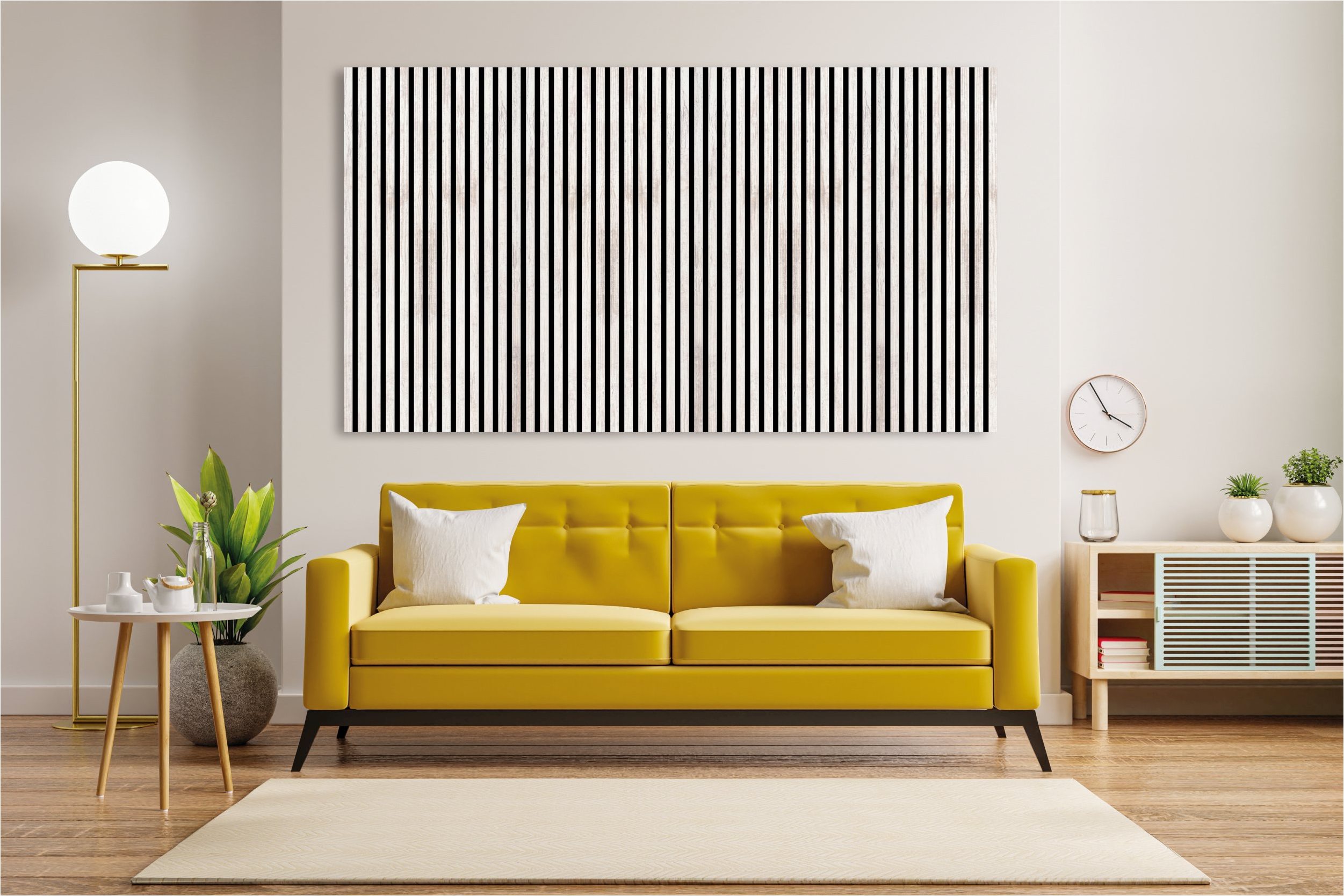 Funktion trifft Design: Diese Akustikpaneele vereinen stilvolles Wanddesign mit spürbarer Schallreduzierung. Mit MDF-Lamellen auf einem nachhaltigen PET-Trägermaterial gefertigt, bringen sie Ruhe, Struktur und Ästhetik in jeden Raum. Ob im Wohnzimmer, Büro oder in der Gastronomie. Die Akustik Wandpaneele schaffen Atmosphäre mit Wirkung.
