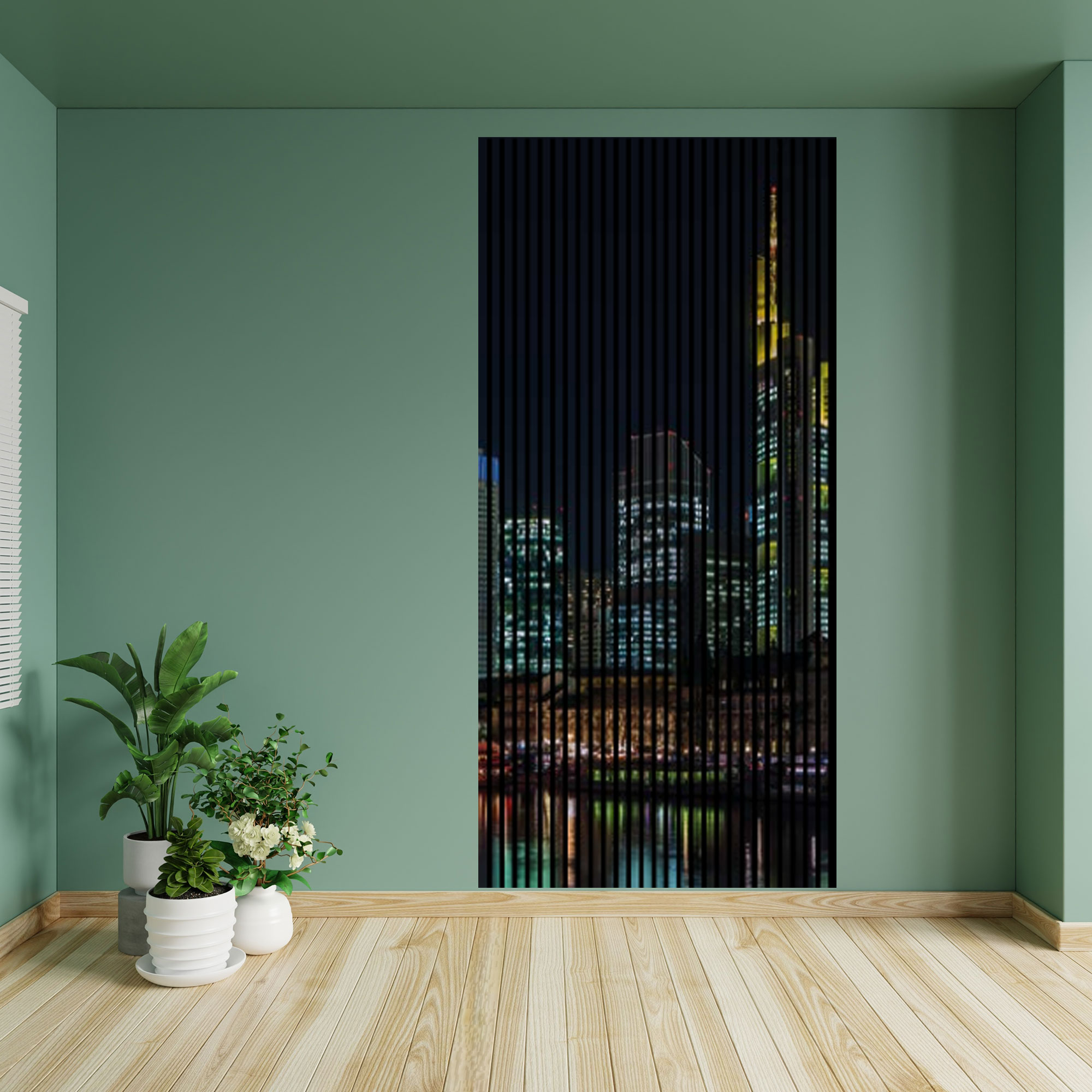 Akustikpaneele mit Digitaldruck Frankfurt Skyline Nacht Wandpaneele Schwarz in versch. Größen
