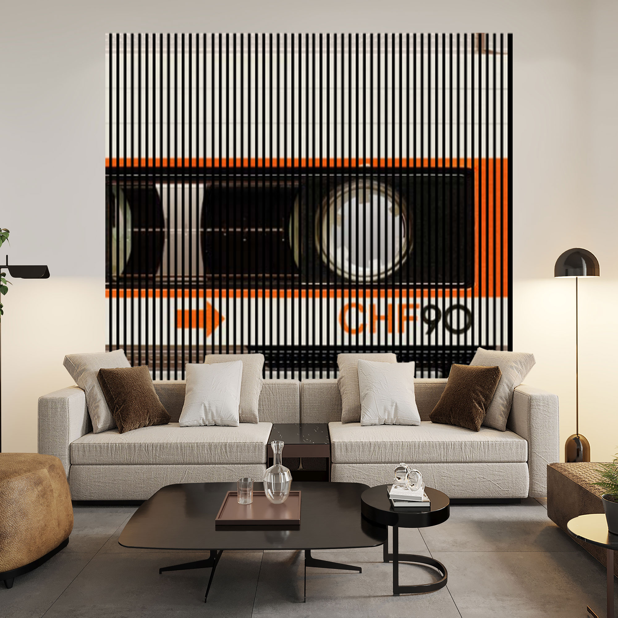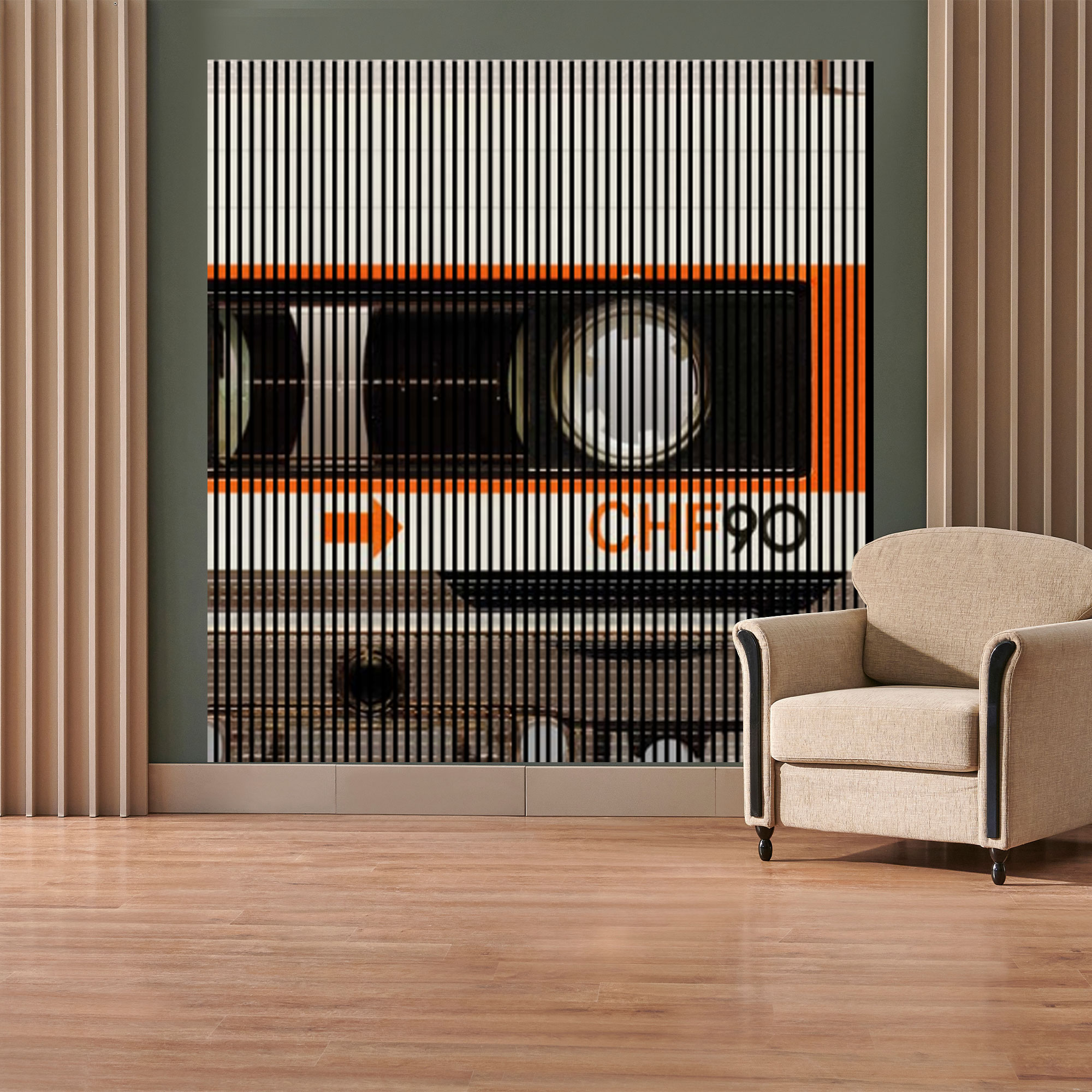 Akustikpaneele mit Digitaldruck Kassette Musik Wandpaneele Weiß Orange in versch. Größen