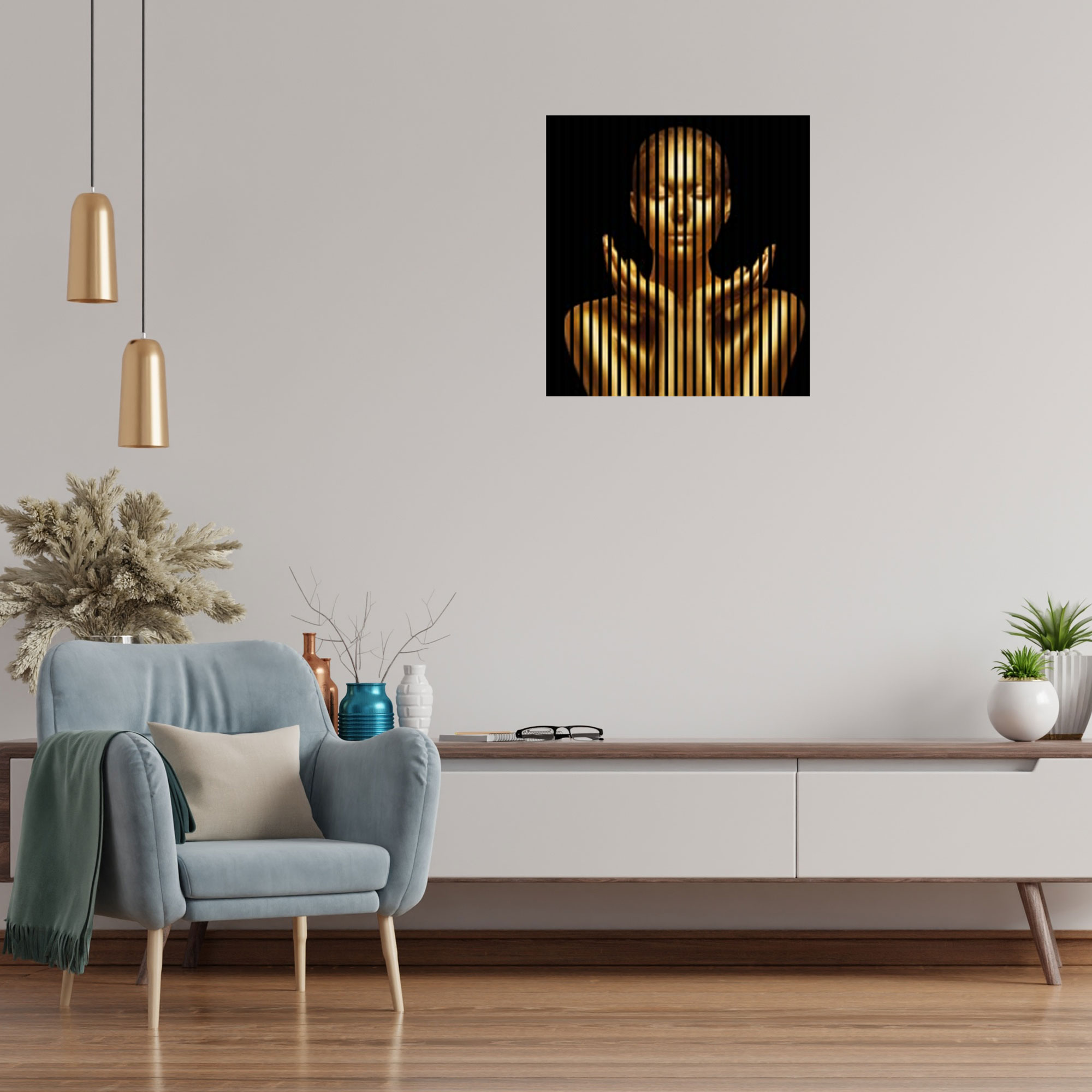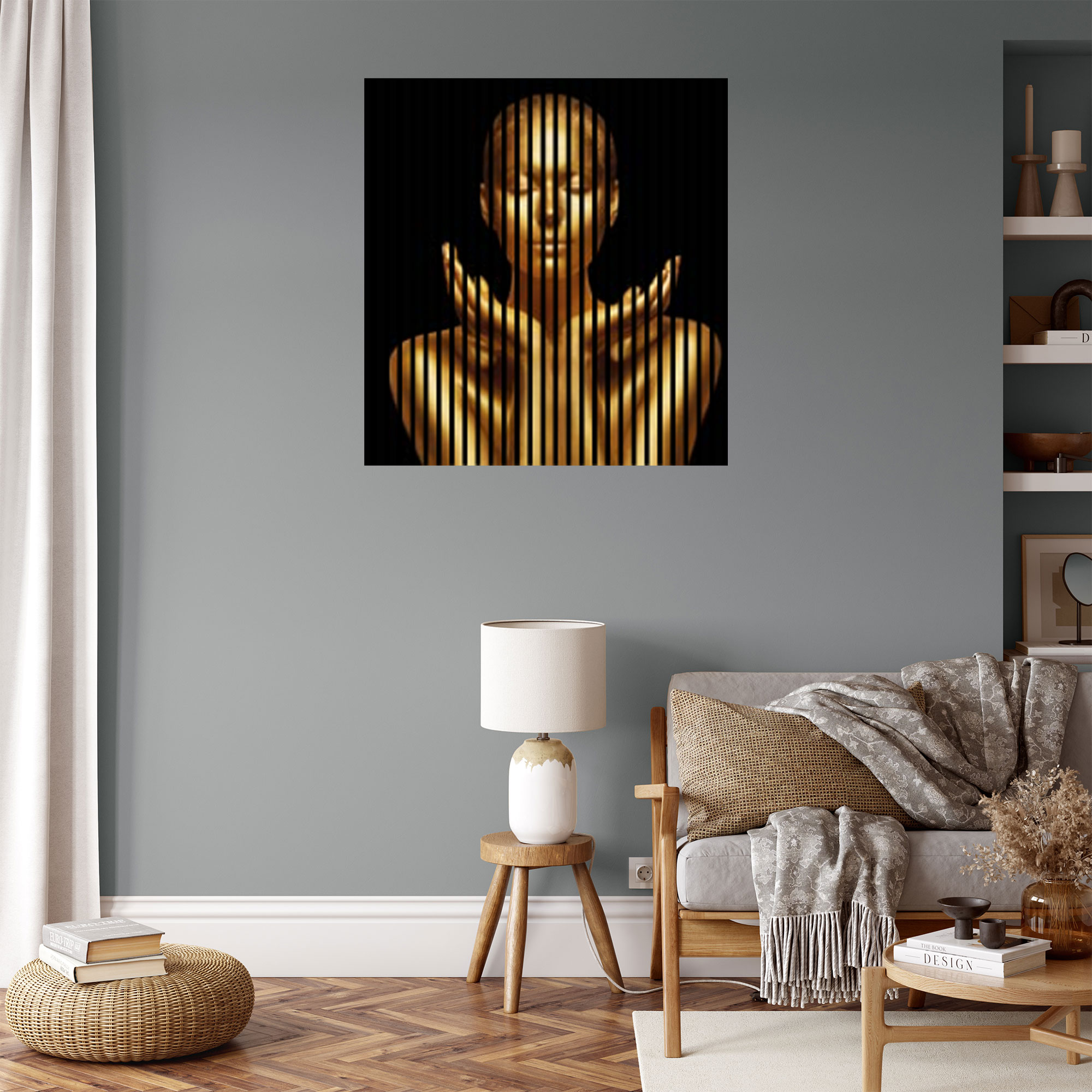 Akustikpaneele mit Digitaldruck Mensch Statue Wandpaneele Schwarz Gold in versch. Größen