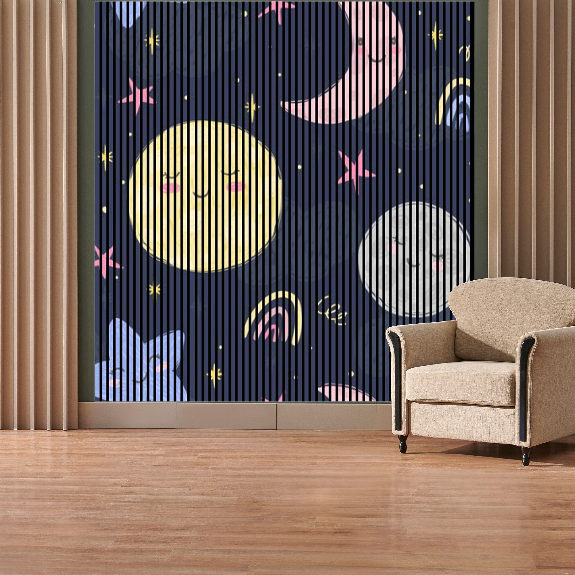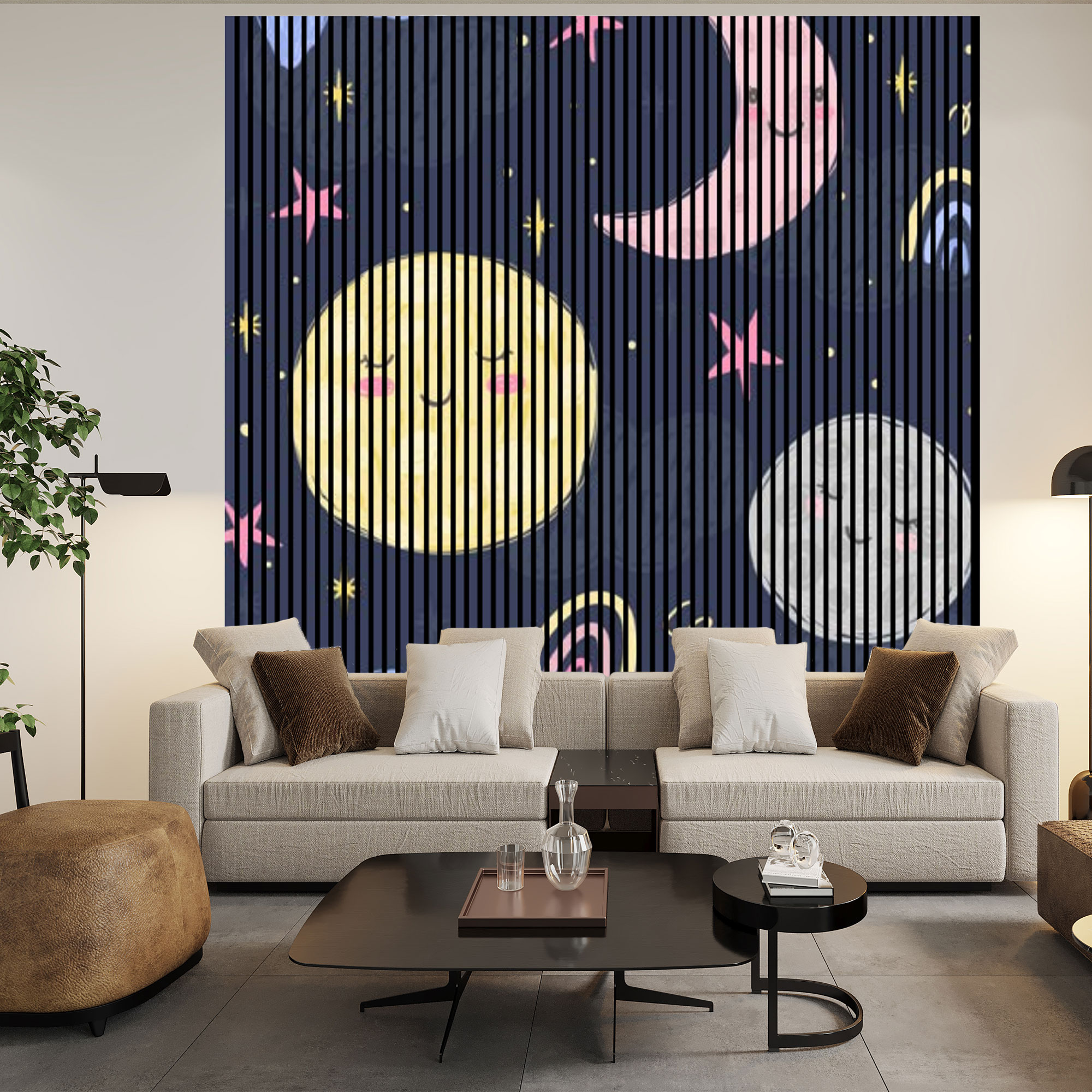 Akustikpaneele mit Digitaldruck Mond Nacht Sterne Wandpaneele Dunkelblau Gelb in versch. Größen