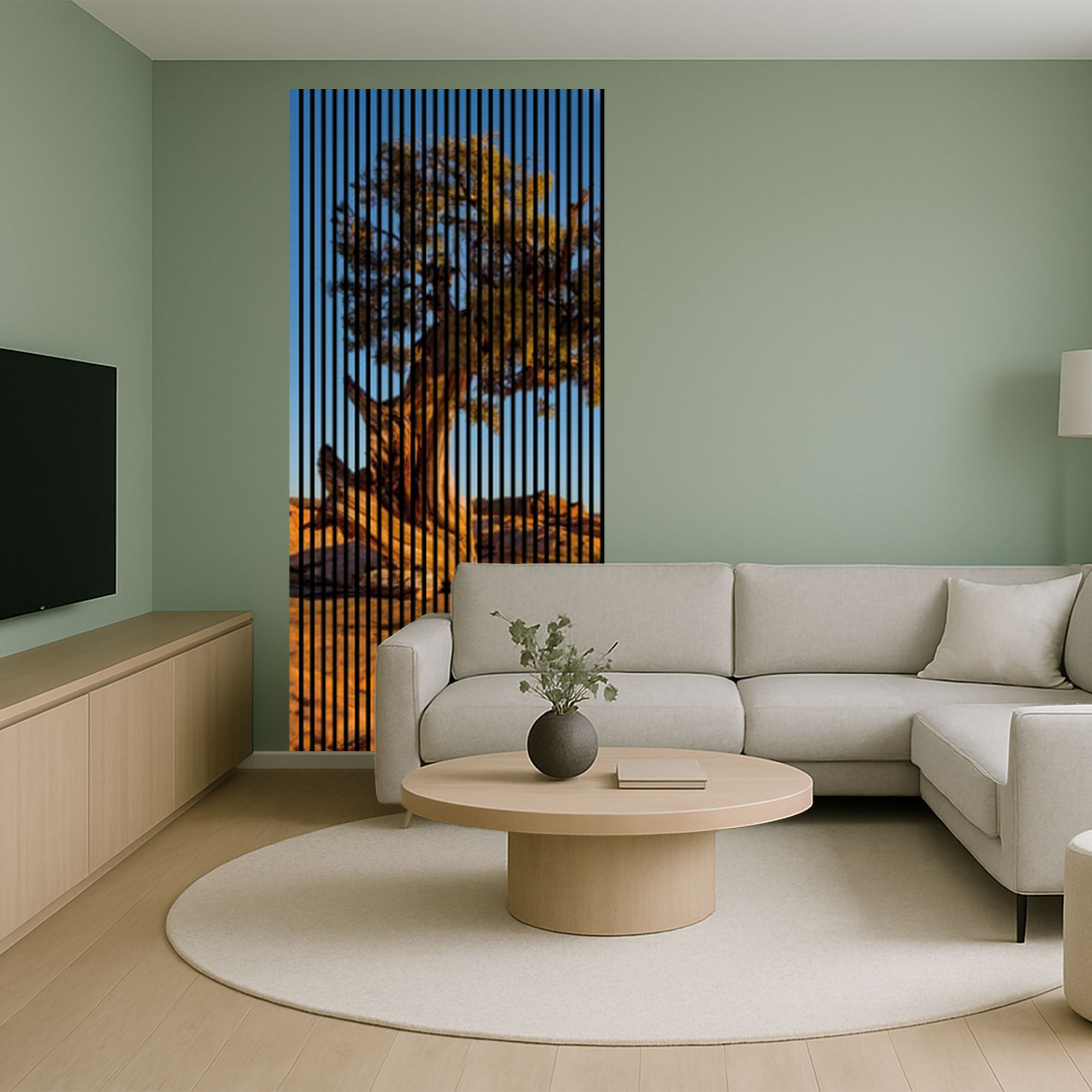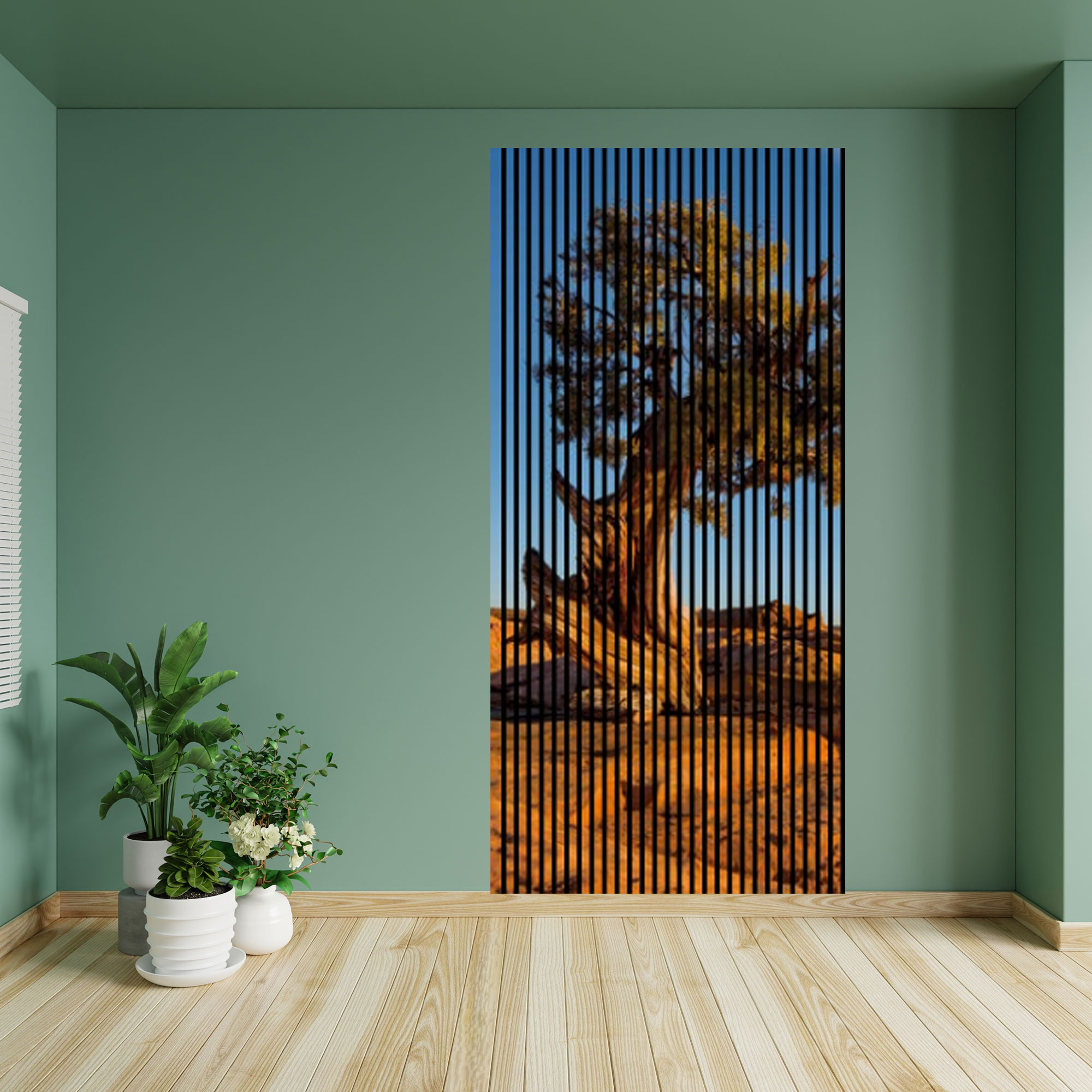 Akustikpaneele mit Digitaldruck Steppe Baum Himmel Wandpaneele Blau Braun in versch. Größen