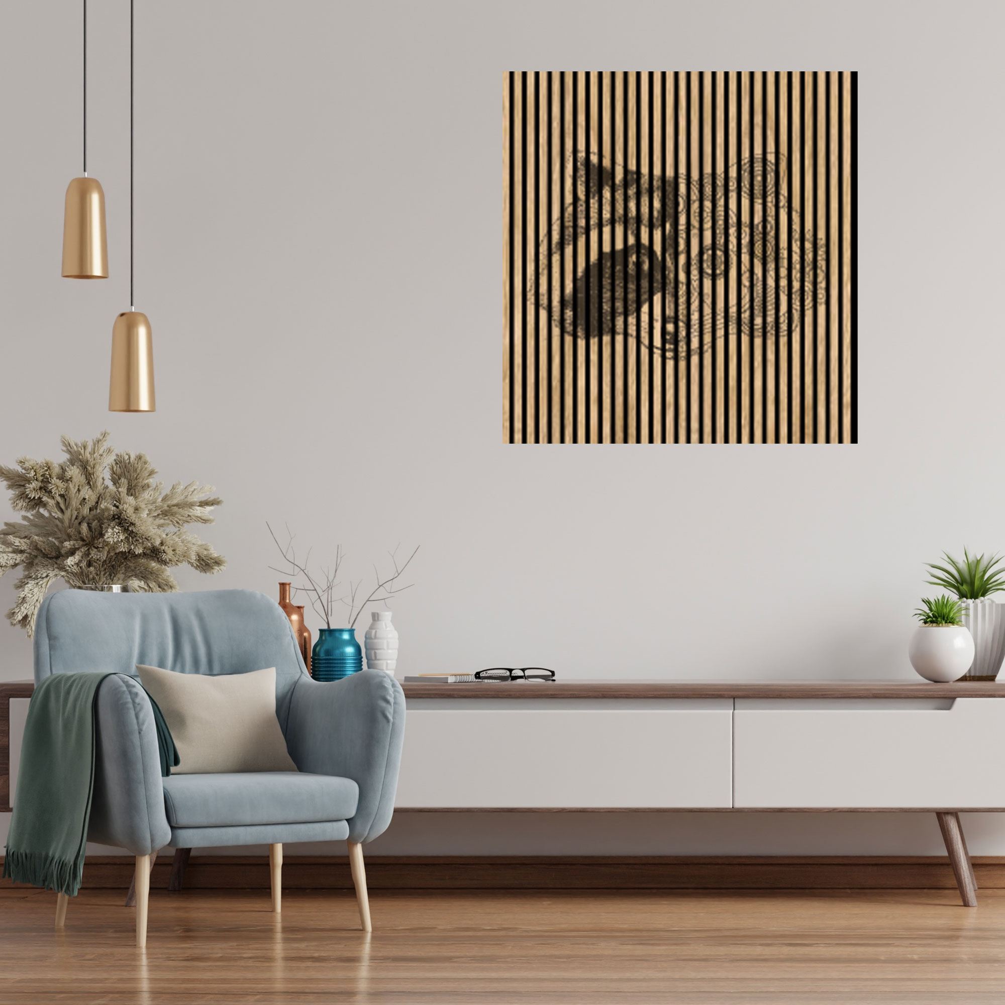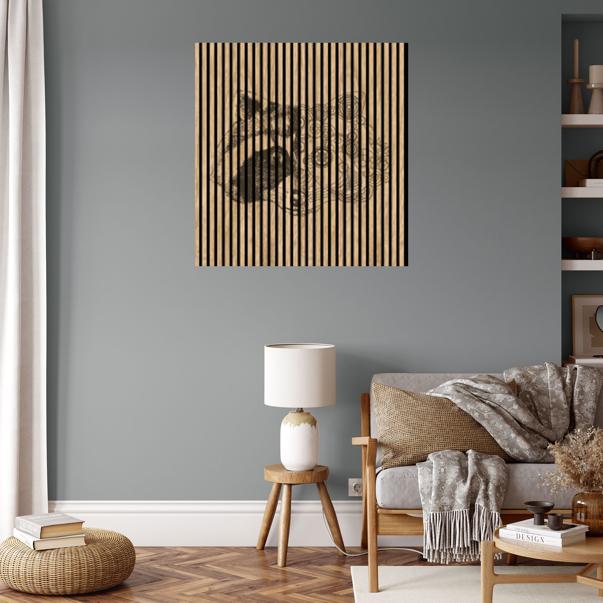 Akustikpaneele mit Digitaldruck Waschbär Zeichnung Wandpaneele Braun Schwarz in versch. Größen