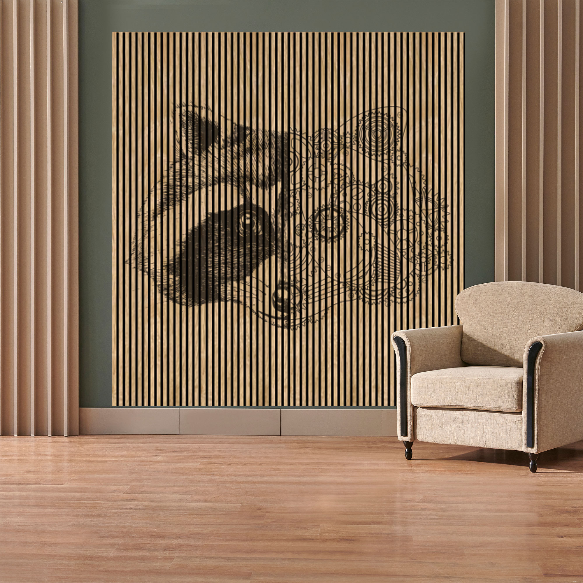 Akustikpaneele mit Digitaldruck Waschbär Zeichnung Wandpaneele Braun Schwarz in versch. Größen