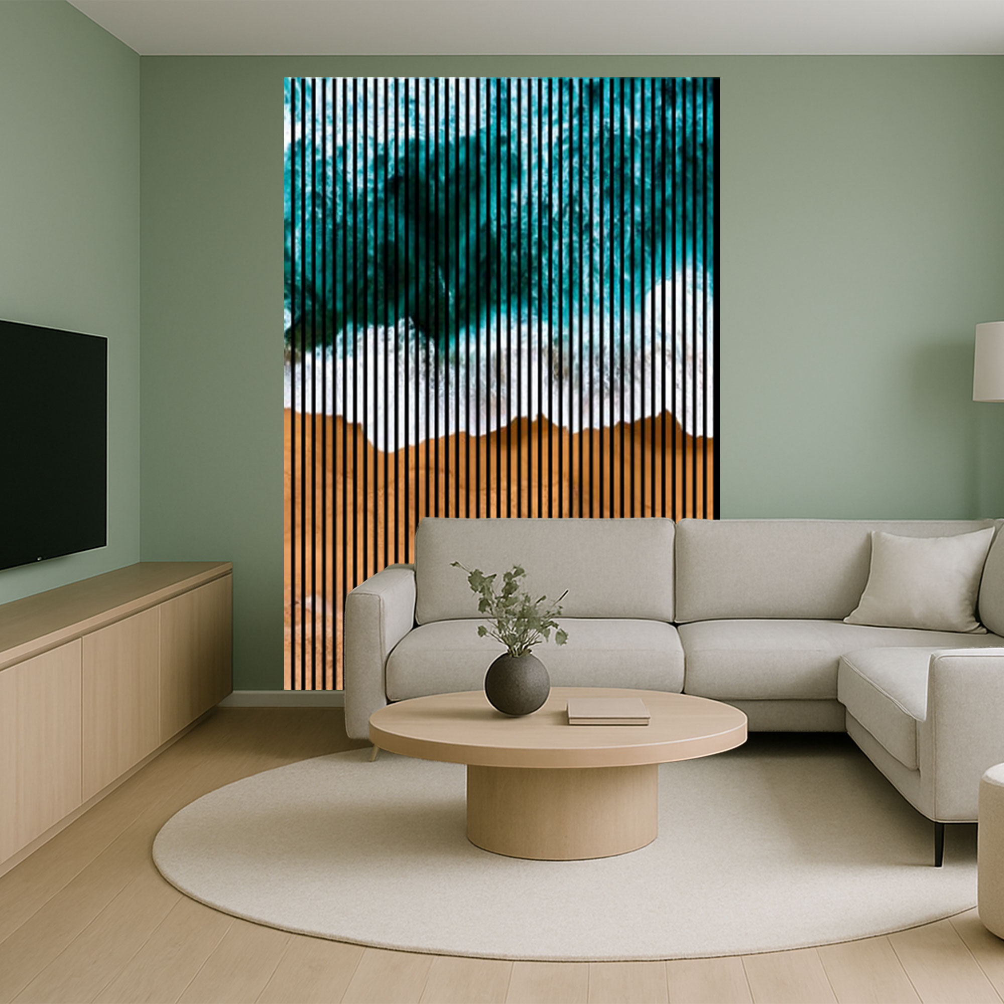 Akustikpaneele mit Digitaldruck Wave Strand Wandpaneele Türkis Braun in versch. Größen