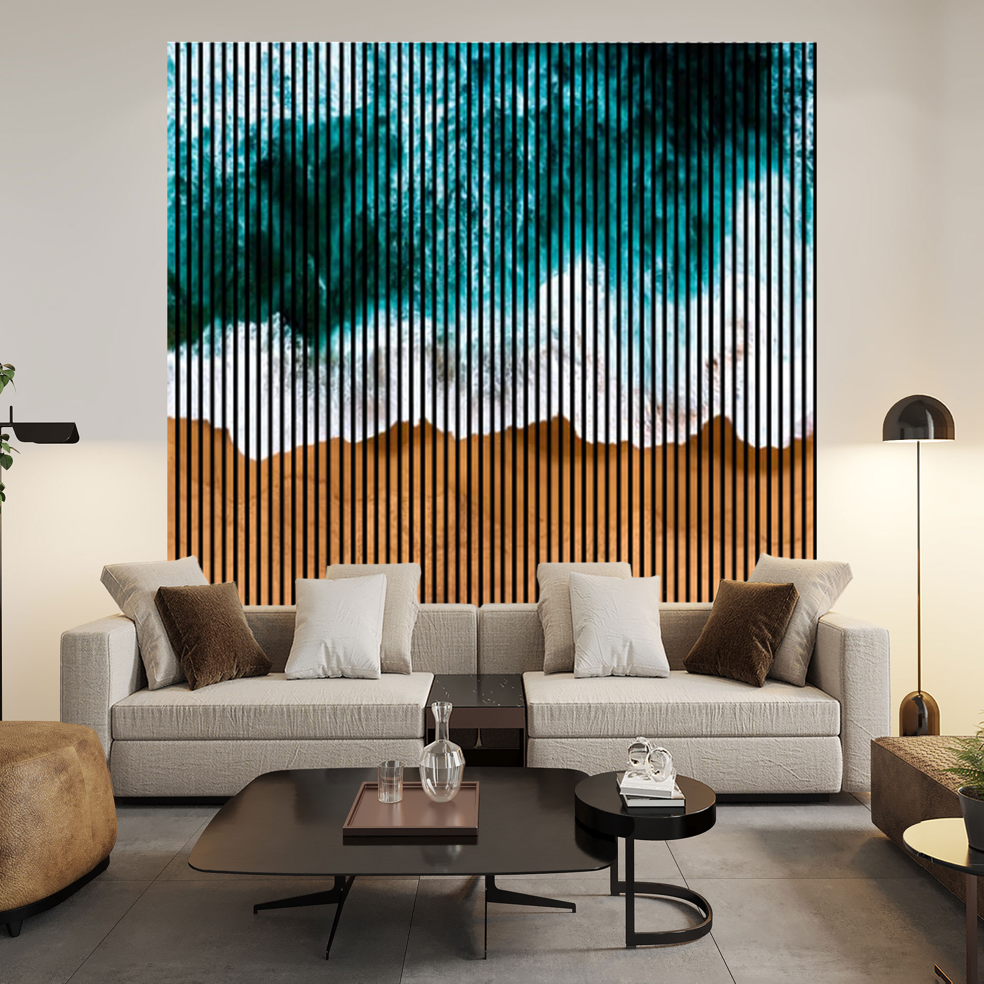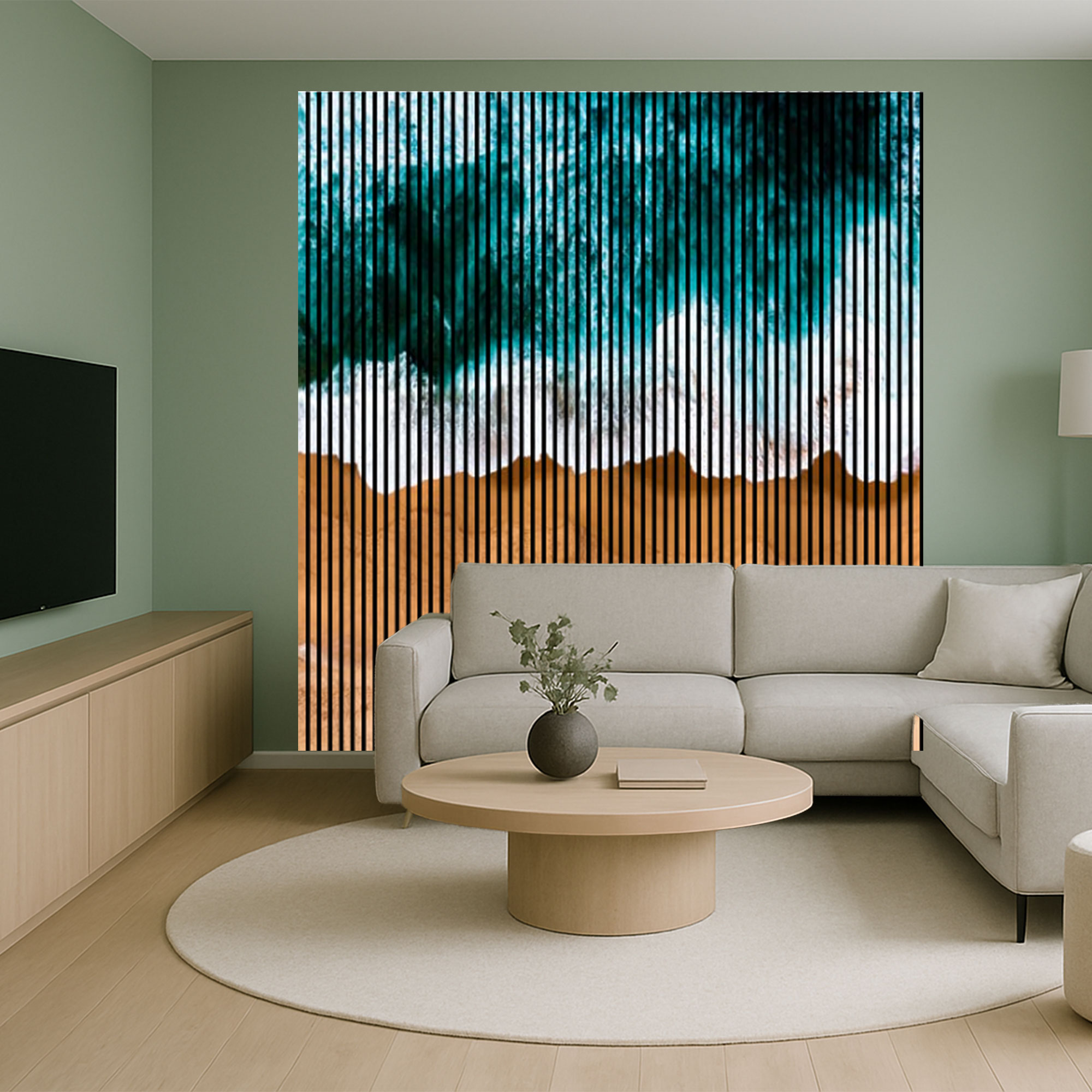 Akustikpaneele mit Digitaldruck Wave Strand Wandpaneele Türkis Braun in versch. Größen
