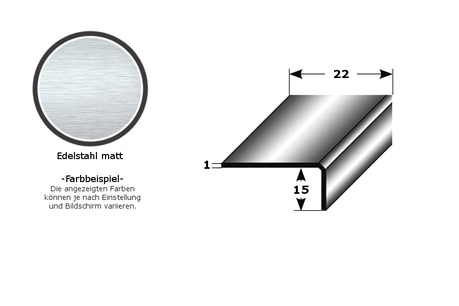 GRÖSSE: Das Bauprofil mit den Abmessungen 22 x 15 x 2700 x 1 mm hat eine Materialstärke von 1 mm