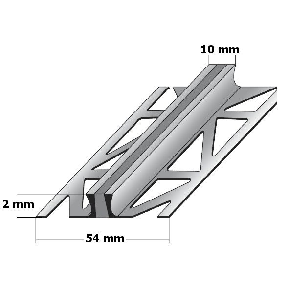 - GRÖSSE: Das Dehnungsfugenprofil verfügt über die Abmessungen 54 x 2 x 2500 mm.