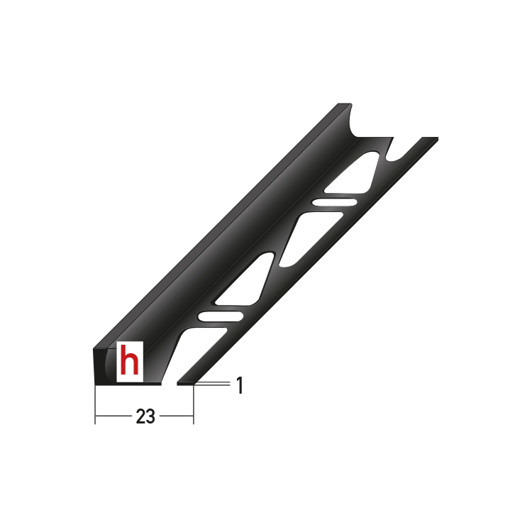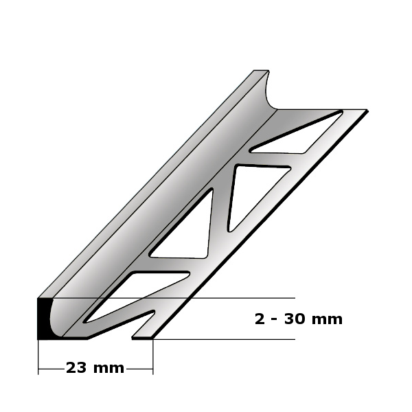 - GRÖSSE: Das Dehnungsfugenprofil verfügt über die Abmessungen 23 x 10 x 2500 mm.