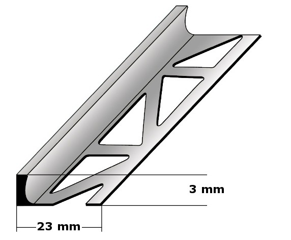 - GRÖSSE: Das Dehnungsfugenprofil verfügt über die Abmessungen 23 x 3 x 2500 mm.