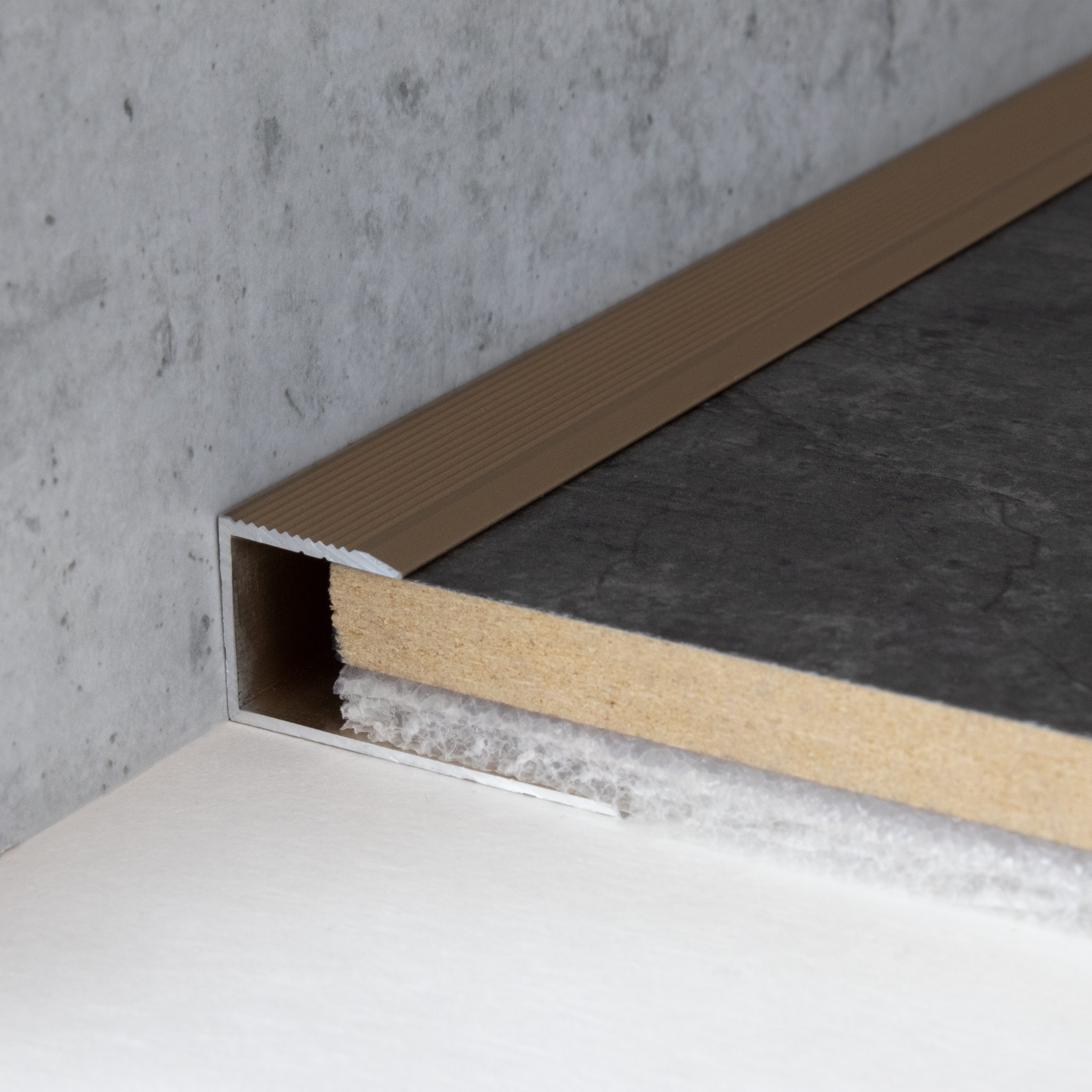Unsere Abschlussprofile überzeugen durch stilvolles Design, erstklassige Verarbeitung und ihre Fähigkeit, sich perfekt in Dein Raumdesign und an den Bodenbelag einzufügen. Die Montage ist unkompliziert und die Auswahl an Designs ist groß. Die Einfassprofile schaffen nicht nur eine optisch ansprechende Abschlusskante, sondern auch saubere Übergänge zwischen Wand und Bodenbelag.