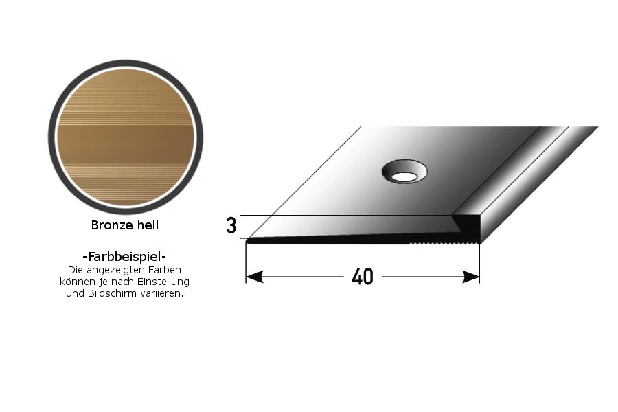 • GRÖSSE: Das Übergangsprofil mit den Abmessungen 40 x 3 x 2700 mm führt zu einem sauberen Abschluss zwischen Wand und Boden.