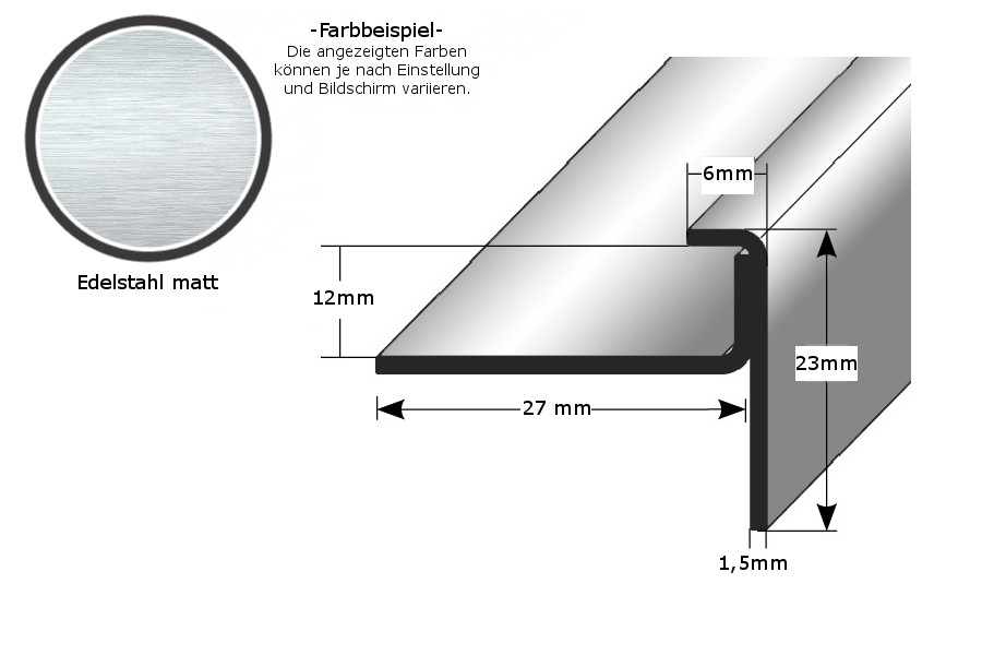 Auer Einfass- & Abschlussprofile Claydon 23 x 29 x 2700 mm Einfasshöhe:2 - 15 mm Edelstahl