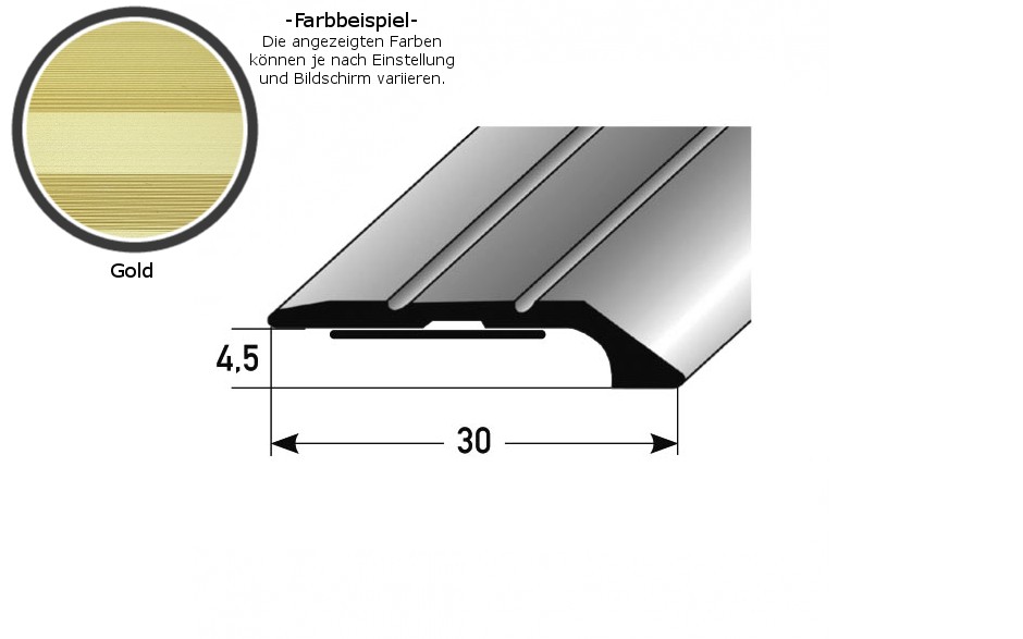- GRÖSSE: Das Abschlussprofil mit den Abmessungen 30 x 4.5 x 900 x 4.5 mm hat eine Einfassung von 4.5 mm.