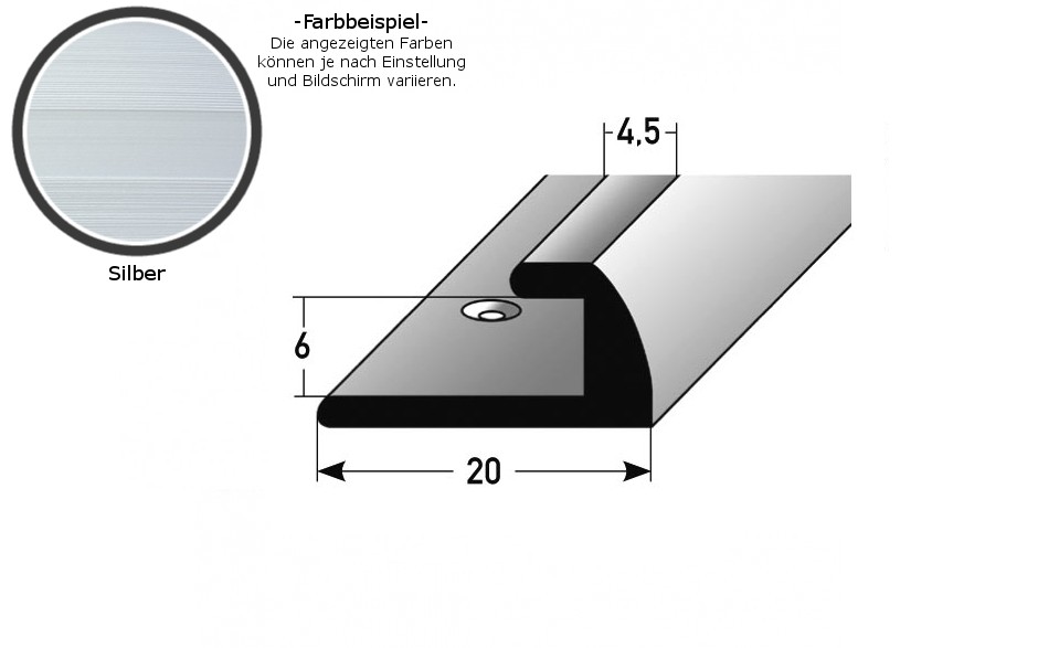 - GRÖSSE: Das Abschlussprofil mit den Abmessungen 20 x 6 x 2700 x 6 mm hat eine Einfassung von 6 mm.