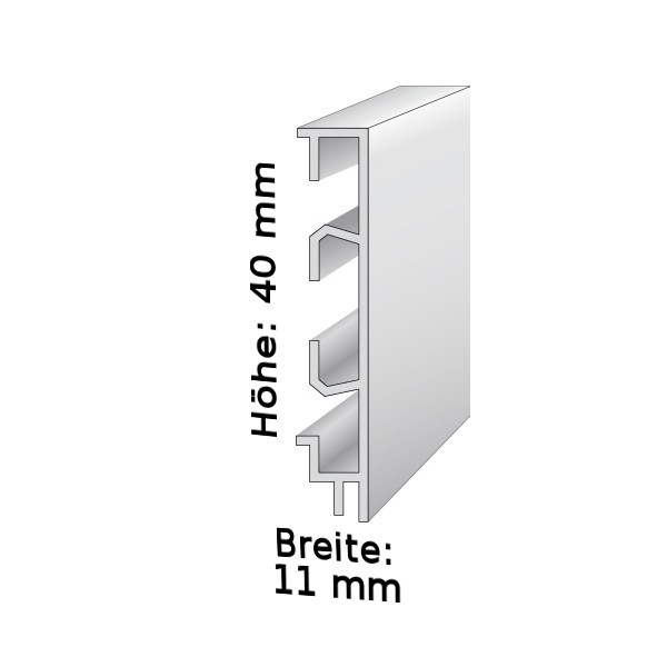 - GRÖSSE: Die Metallsockelleiste mit den Abmessungen 40 x 2500 mm mit einer Materialstärke von 11 mm schafft einen sauberen Übergang zwischen Boden und Wand.
