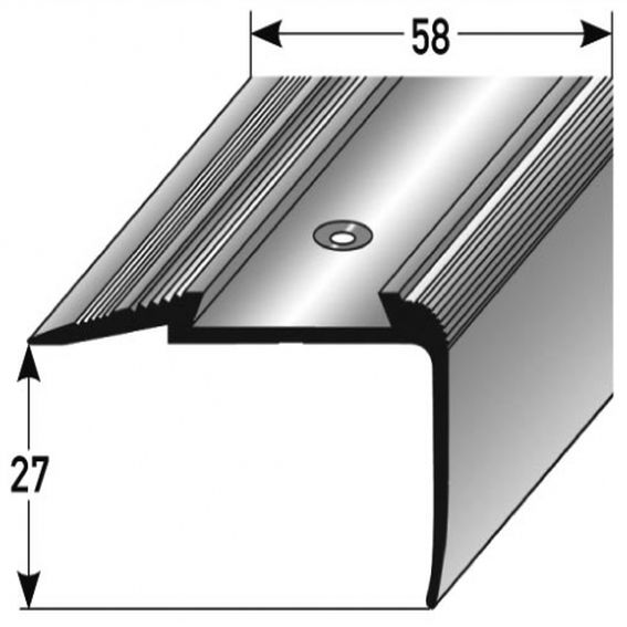 - GRÖSSE: Das Winkelprofil mit den Abmessungen 58 x 27 x 2500 mm mm und schafft einen sauberen Abschluss an der Treppenkante.