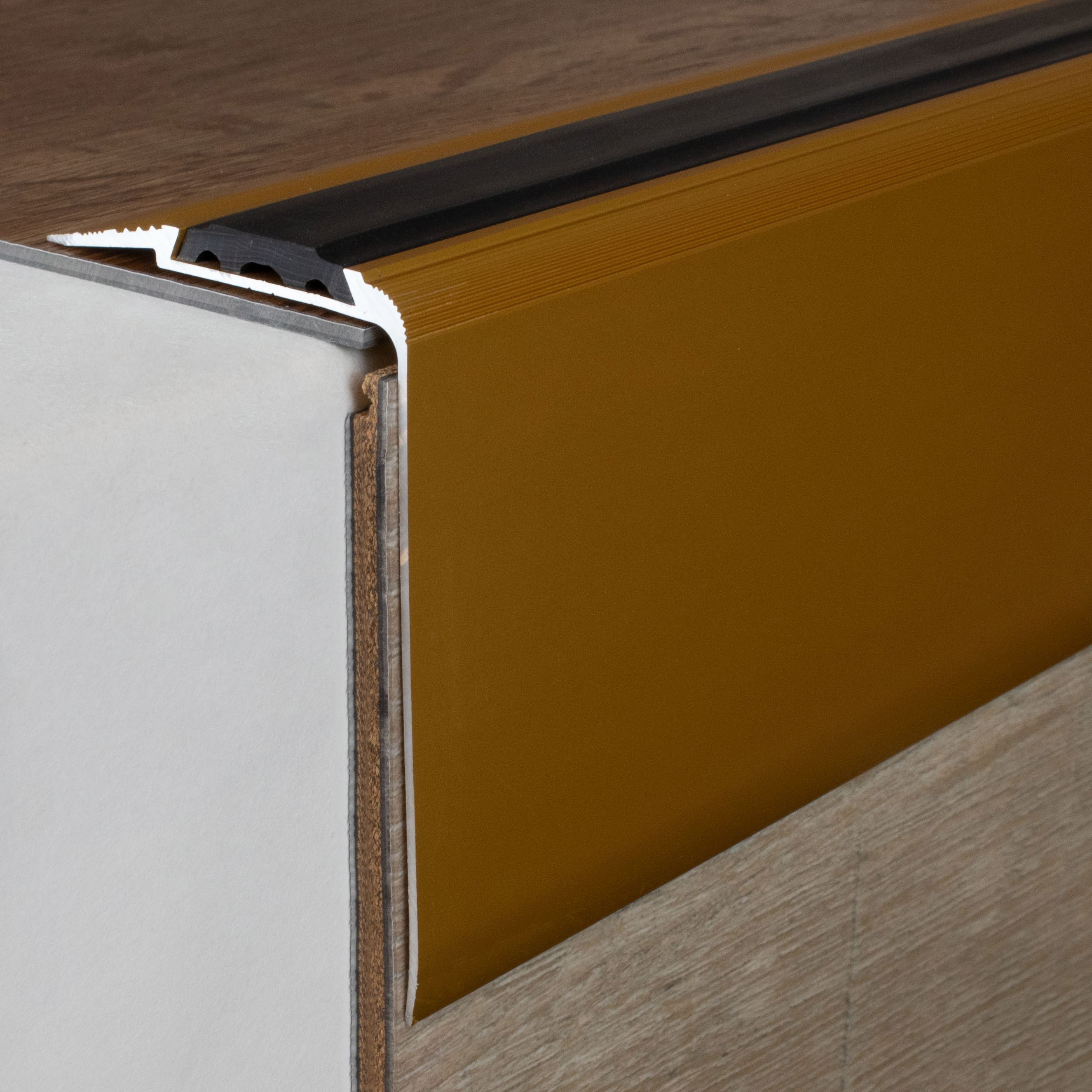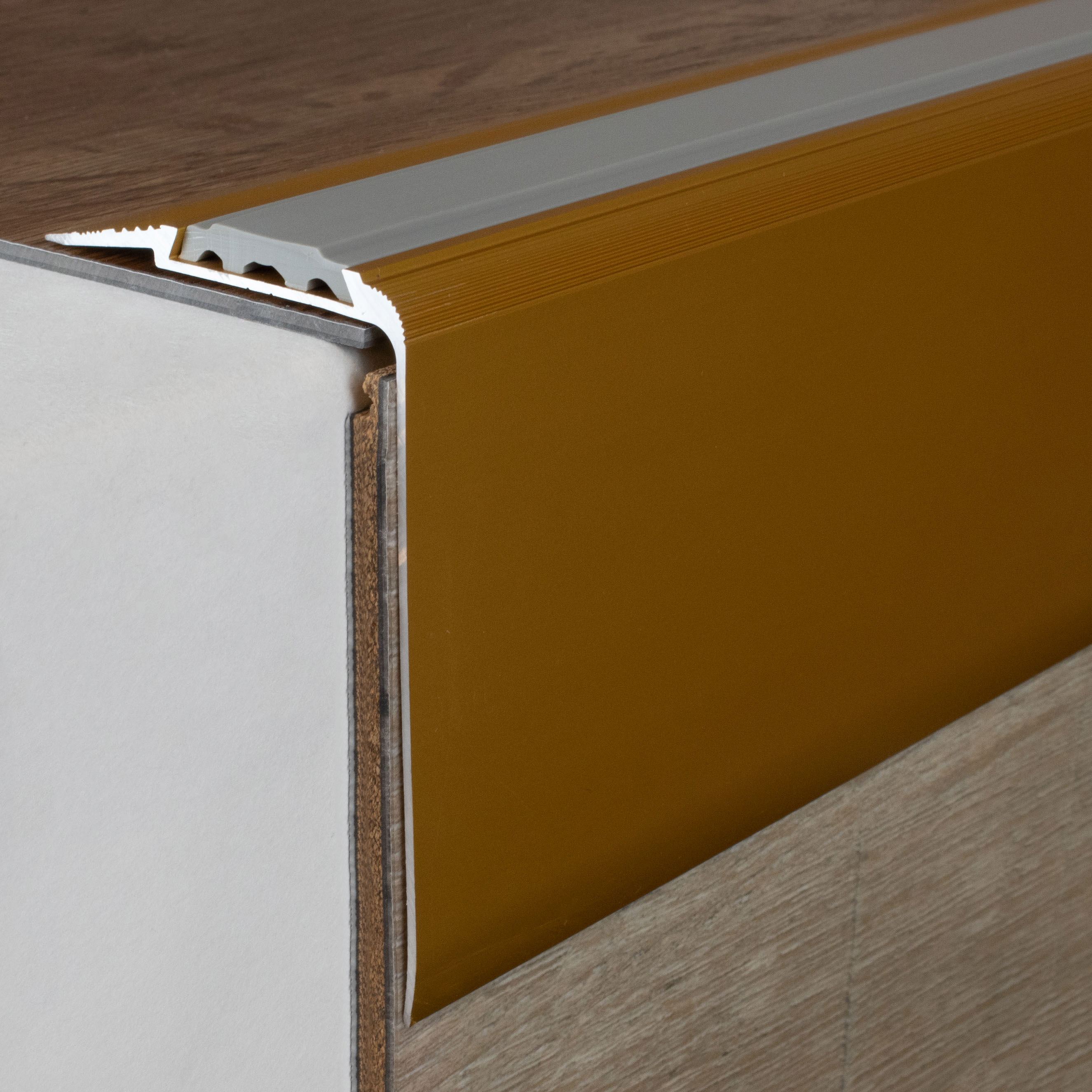 - GRÖSSE: Das Winkelprofil mit den Abmessungen 58 x 80 x 2700 mm schafft einen sauberen Abschluss an der Treppenkante.