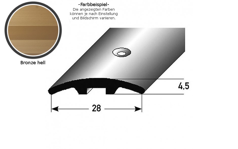 - GRÖSSE: Das Übergangsprofil mit den Abmessungen 28 x 4.5 x 900 mm schafft einen sauberen Übergang zwischen verschiedenen Bodenbelägen.