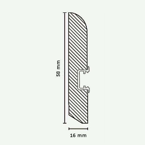 • GRÖSSE: Die Fußleiste mit den Abmessungen 16 x 58 x 2400 mm schafft einen sauberen Übergang zwischen Boden und Wand.