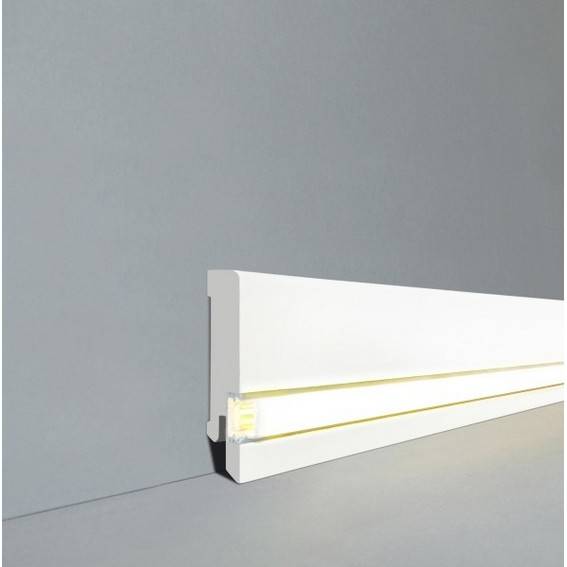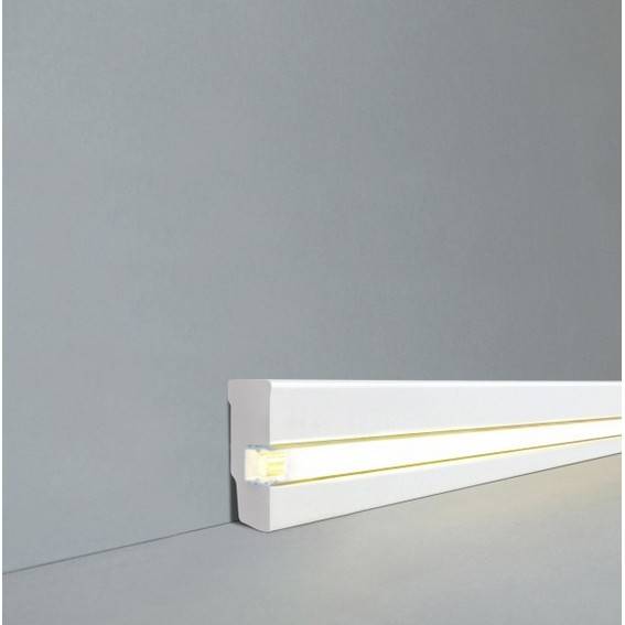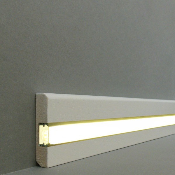 Licht Sockelleiste "Bochum" Massivholz 13 x 58 x 2400 mm Weiß LED Fußleiste by PROVISTON