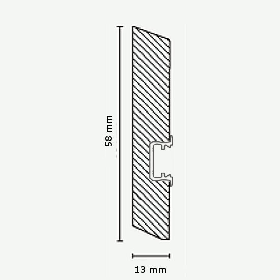 • GRÖSSE: Die Fußleiste mit den Abmessungen 13 x 58 x 2400 mm schafft einen sauberen Übergang zwischen Boden und Wand.