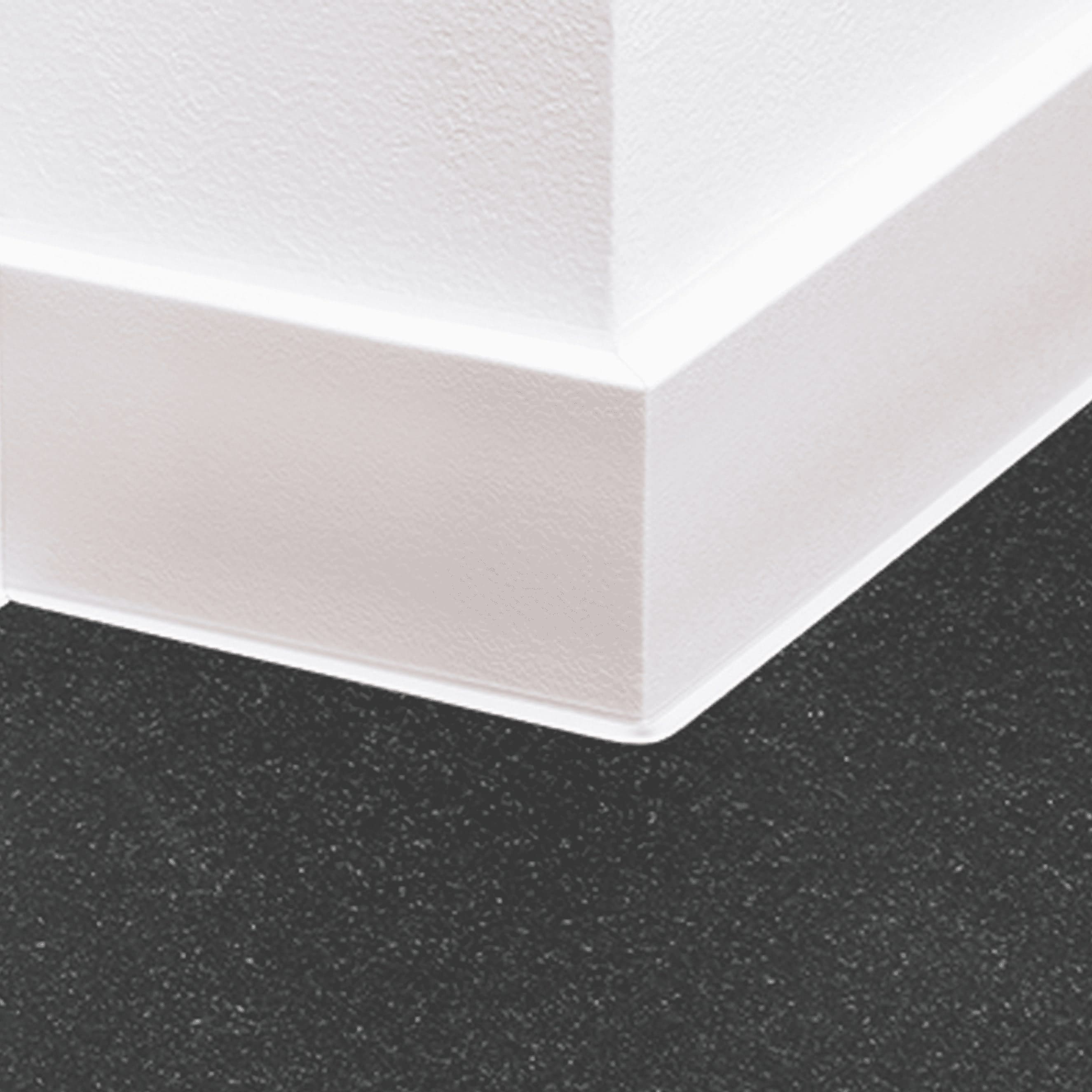 Hinweis: Die Sockelleisten Außenwinkel werden als vorgefertigtes Element geliefert, welches nur noch mittig in zwei Teile getrennt werden muss.