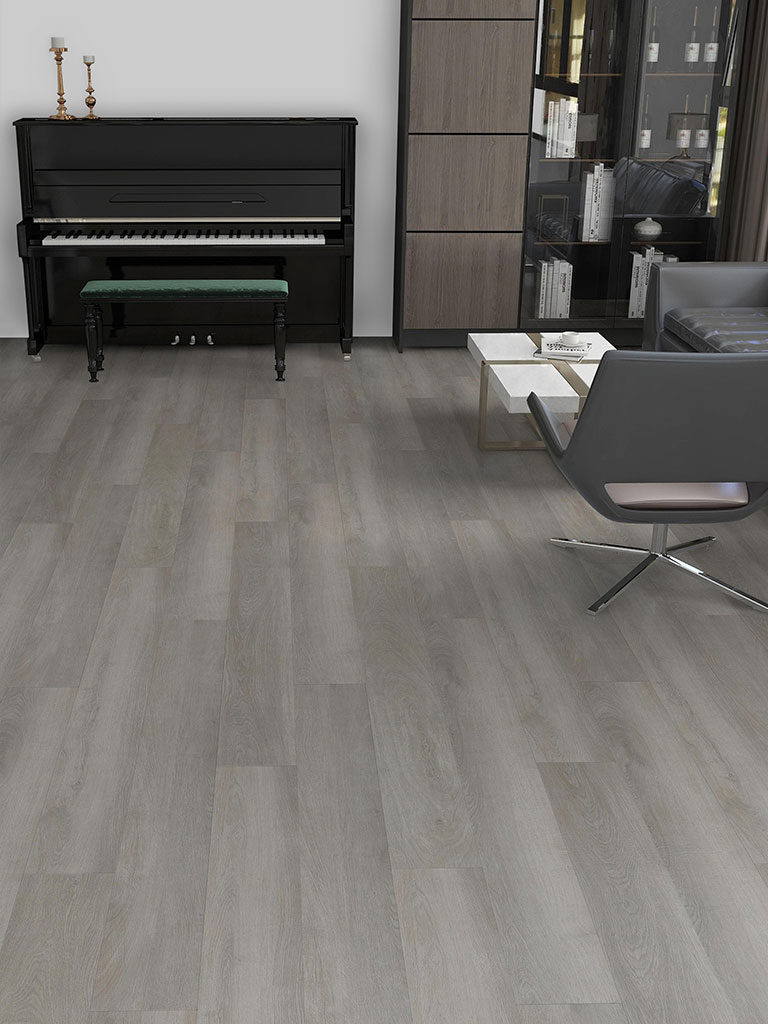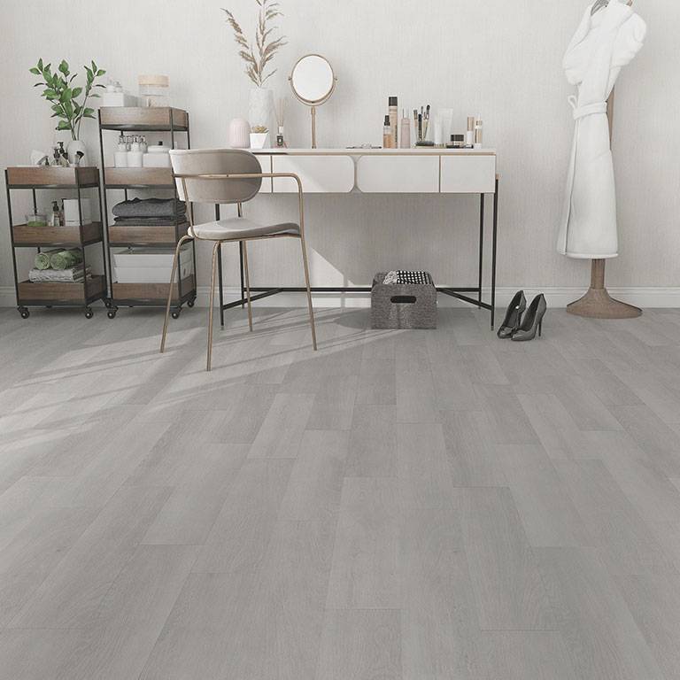 Ein harmonisches Grau für zeitlose Schönheit: Unser Vinyl Designboden in Eiche Grau verleiht deinem Raum eine ansprechende Ruhe und Eleganz.