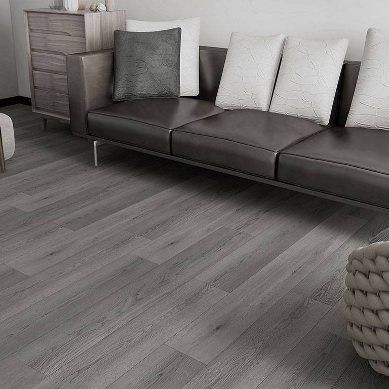 Ein harmonisches Grau für zeitlose Schönheit: Unser Vinyl Designboden in Eiche Grau verleiht deinem Raum eine ansprechende Ruhe und Eleganz.