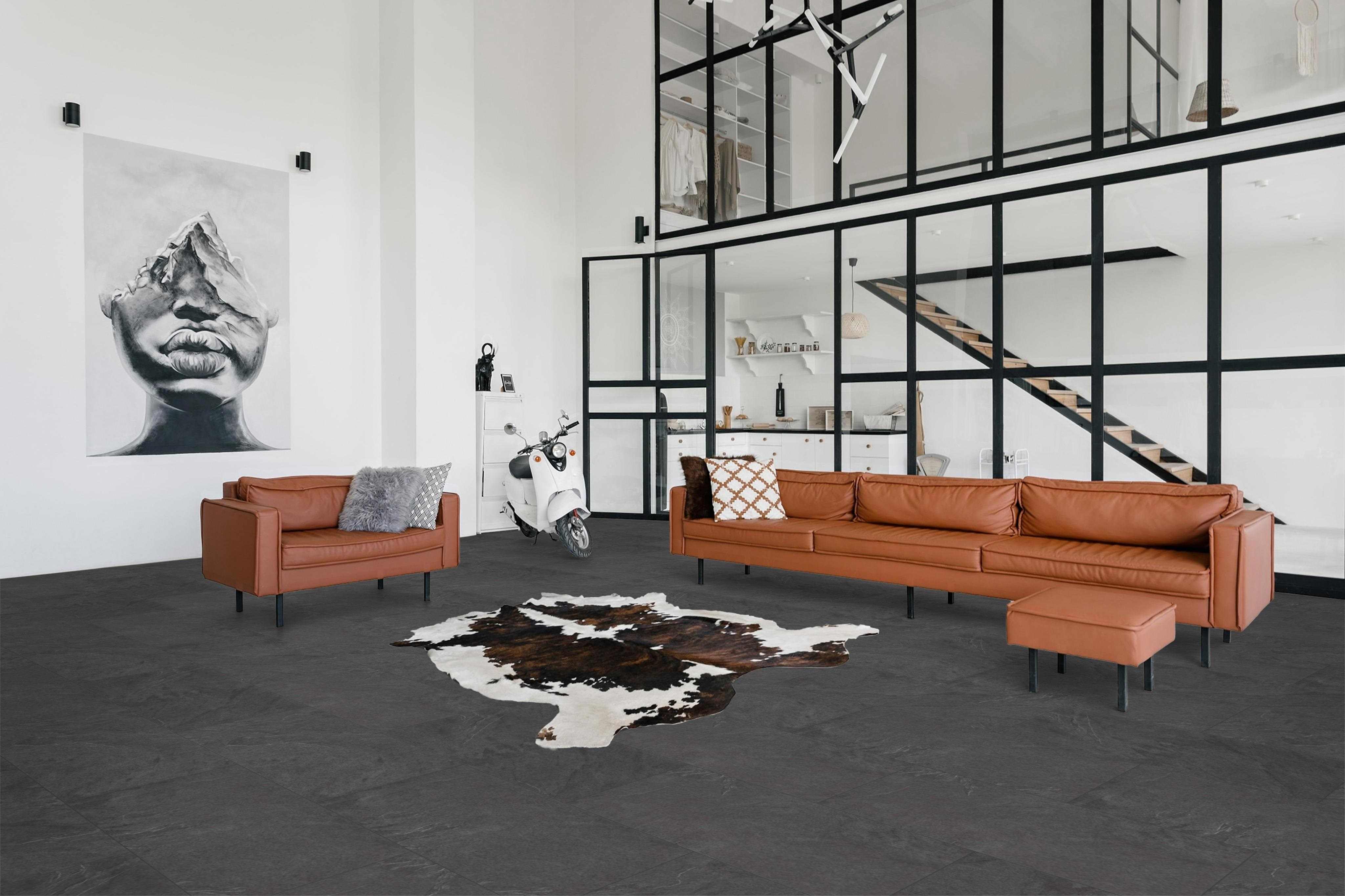 REALISTISCHE OPTIK: Dank der matten Oberfläche ist die Optik des Schieferbodens kaum von der eines echten Stein Fußbodens zu unterscheiden.