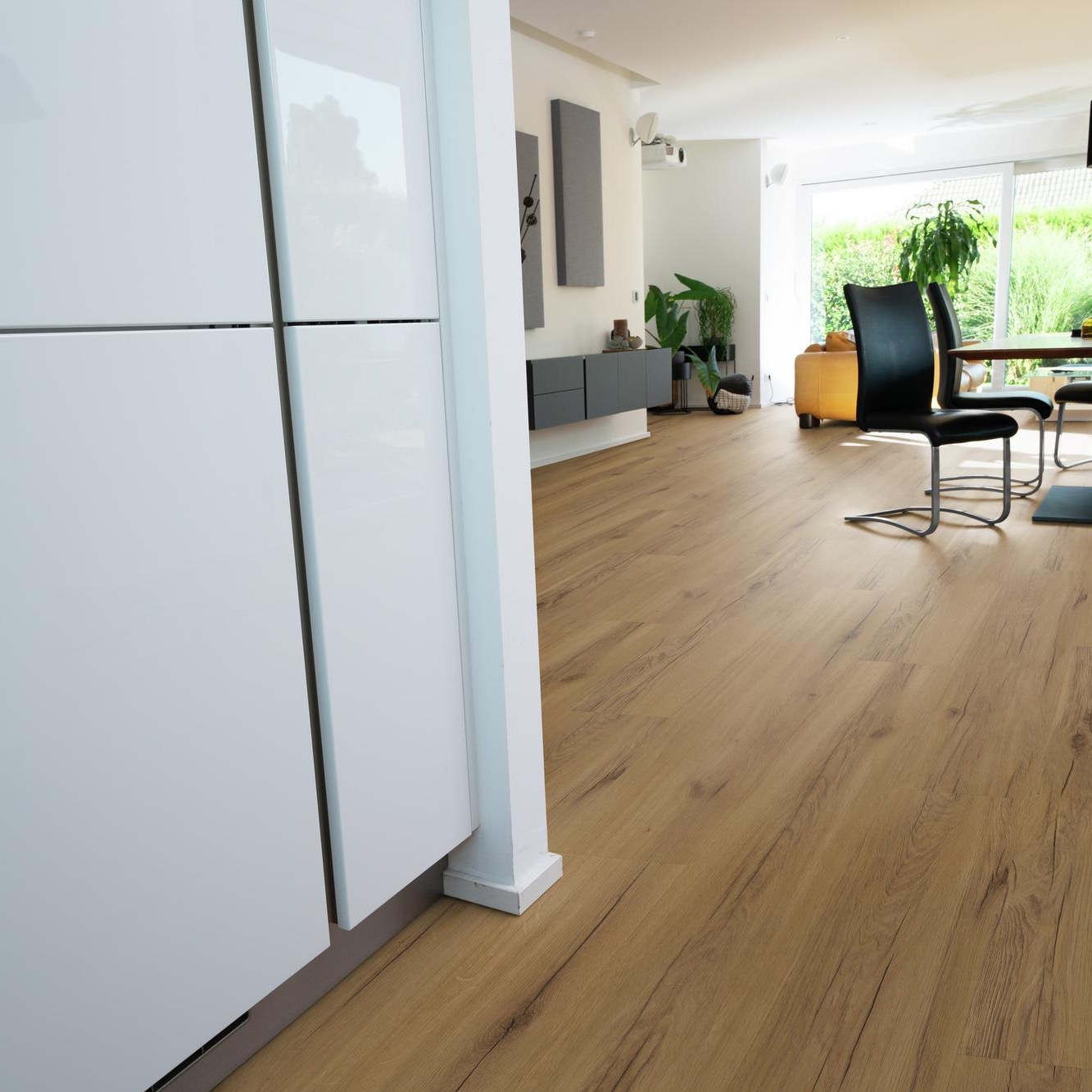 Der Klebe Vinylboden mit authentischer Holzstruktur schafft ein natürliches Ambiente in Deinen Räumen.