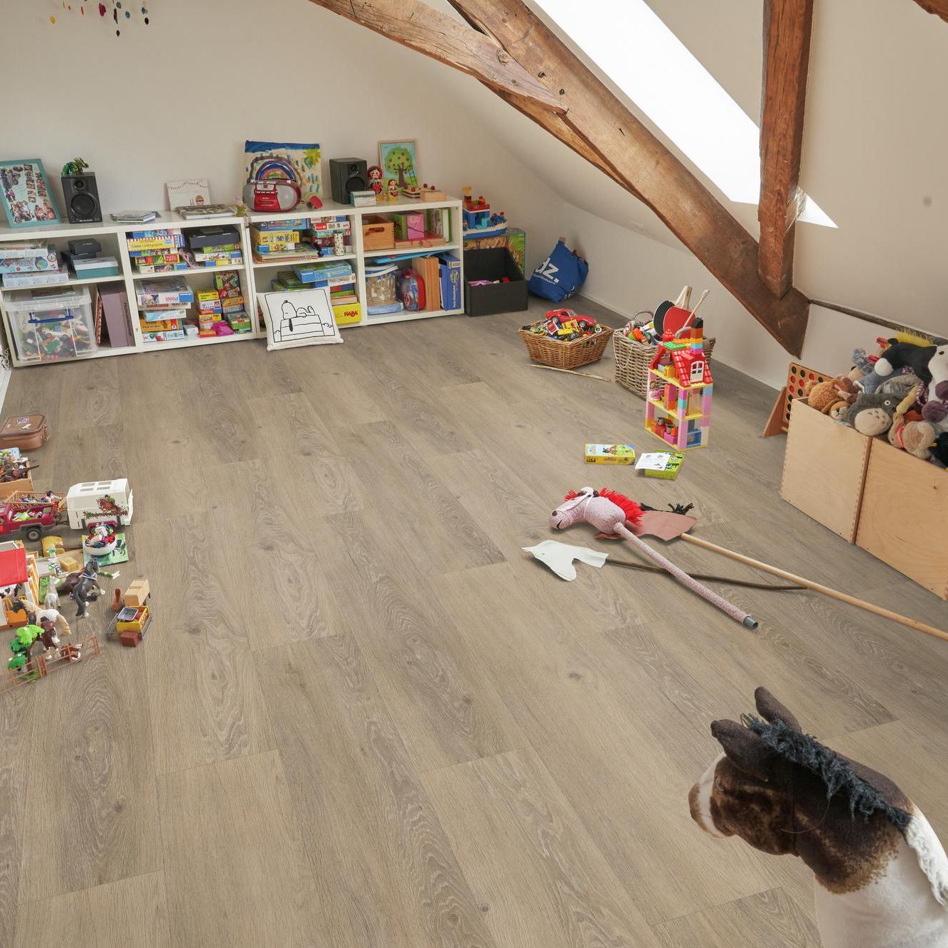 - HOCHBELASTBAR: Klassischer Vinylboden mit integrierter Trittschalldämmung.