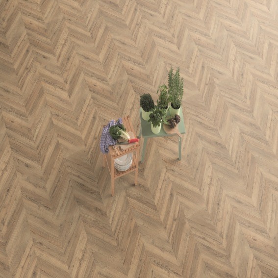 Das Egger Laminat in Rillington Eiche dunkel ist ein sehr natärliches Laminat mit rustikalem Fischgrätmuster auf der Bodendiele.