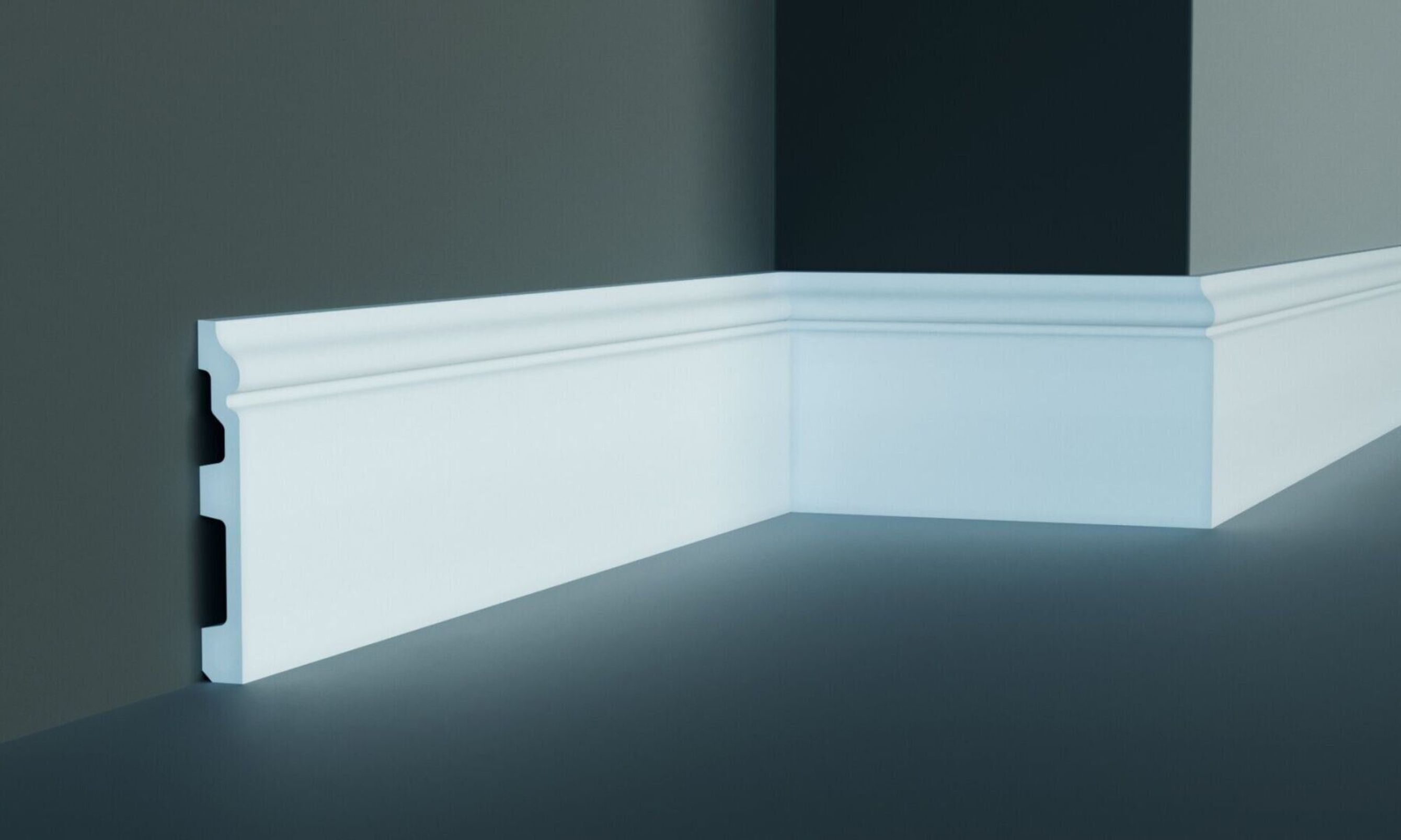 Die Installation der Außenwinkel gestaltet sich äußerst einfach. Das Eckelement muss zunächst in der Mitte durchgeschnitten werden. Anschließend lassen sich die beiden Eckteile unkompliziert durch Verschrauben, Kleben oder mit Montage Clips montieren – je nach den Anforderungen des Untergrundes und der Leiste. Dabei ist es wichtig, dass der Untergrund eben und sauber ist. Die Stoßfugen können im Anschluss mit Acryl versiegelt werden.