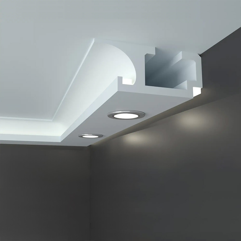 Elite Decor Lichtleiste KD409 Polystyrol 120 x 250 x 1150 mm Weiß Styropor Stuckleiste Deckenleiste