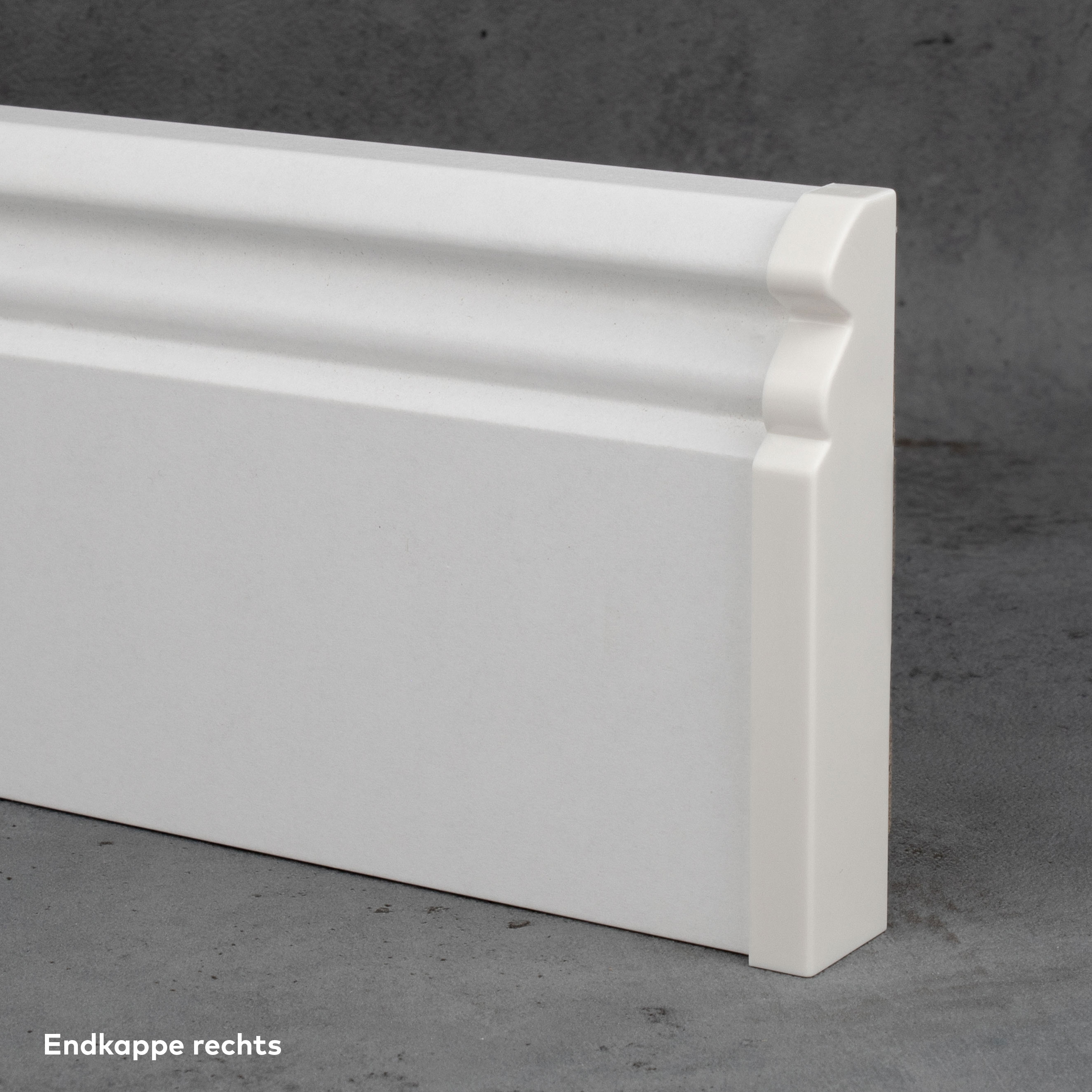 Die Endkappen ermöglichen einen sauberen Abschluss an den Enden der Fußleisten. Diese Endstücke werden bereits montagefertig geliefert, so dass Du sie im Handumdrehen anbringen kannst, ohne aufwendige Anpassungen vornehmen zu müssen.
