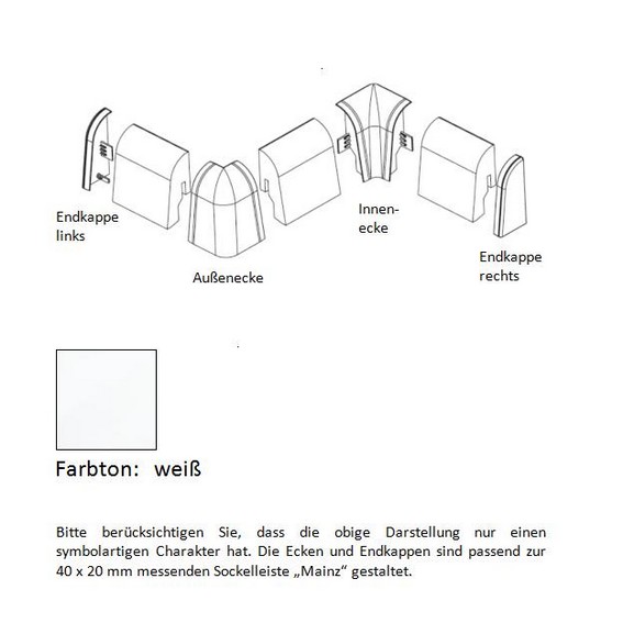 Endkappen Rechts für MDF Sockelleisten Kunststoff 40 x 20 mm Weiß by PROVISTON